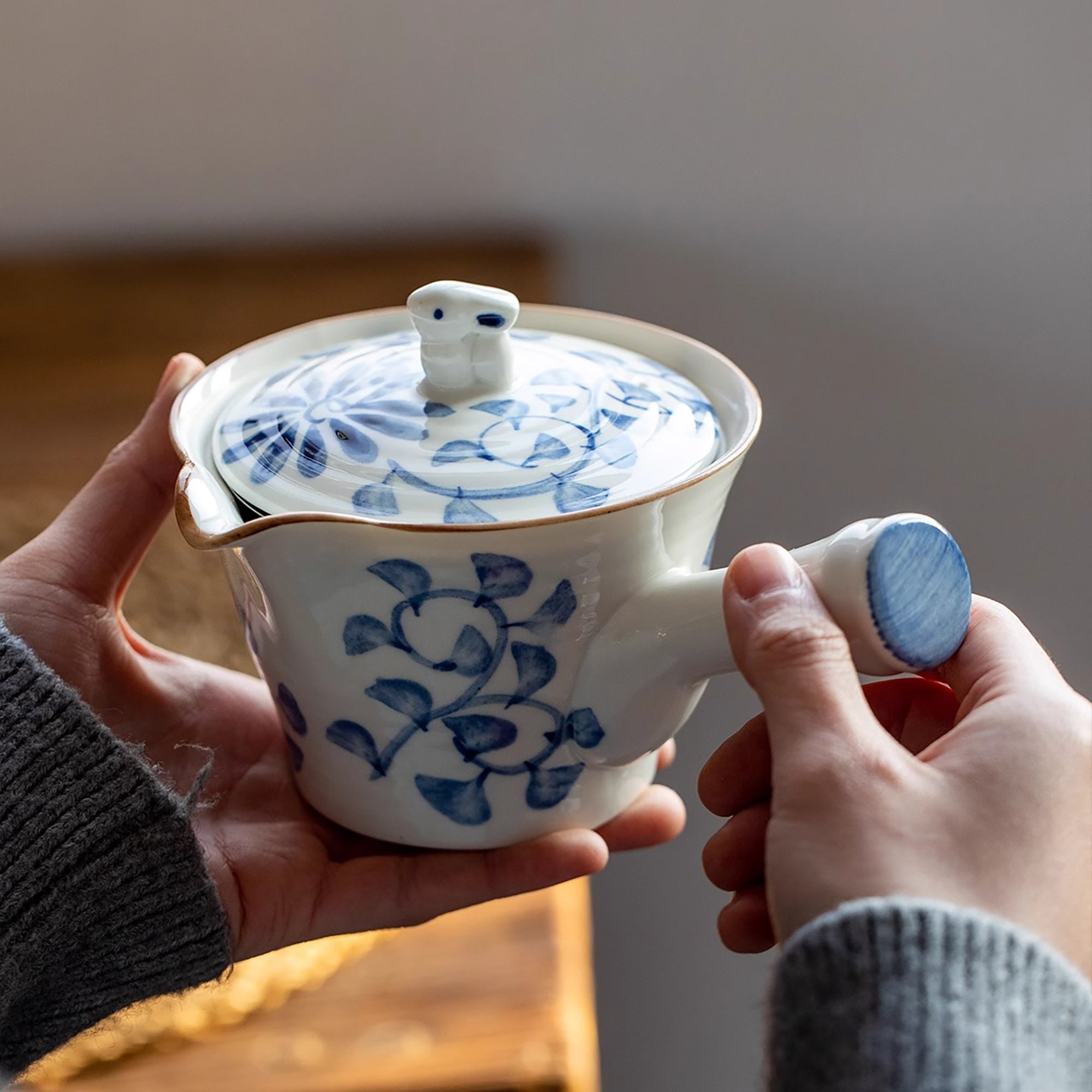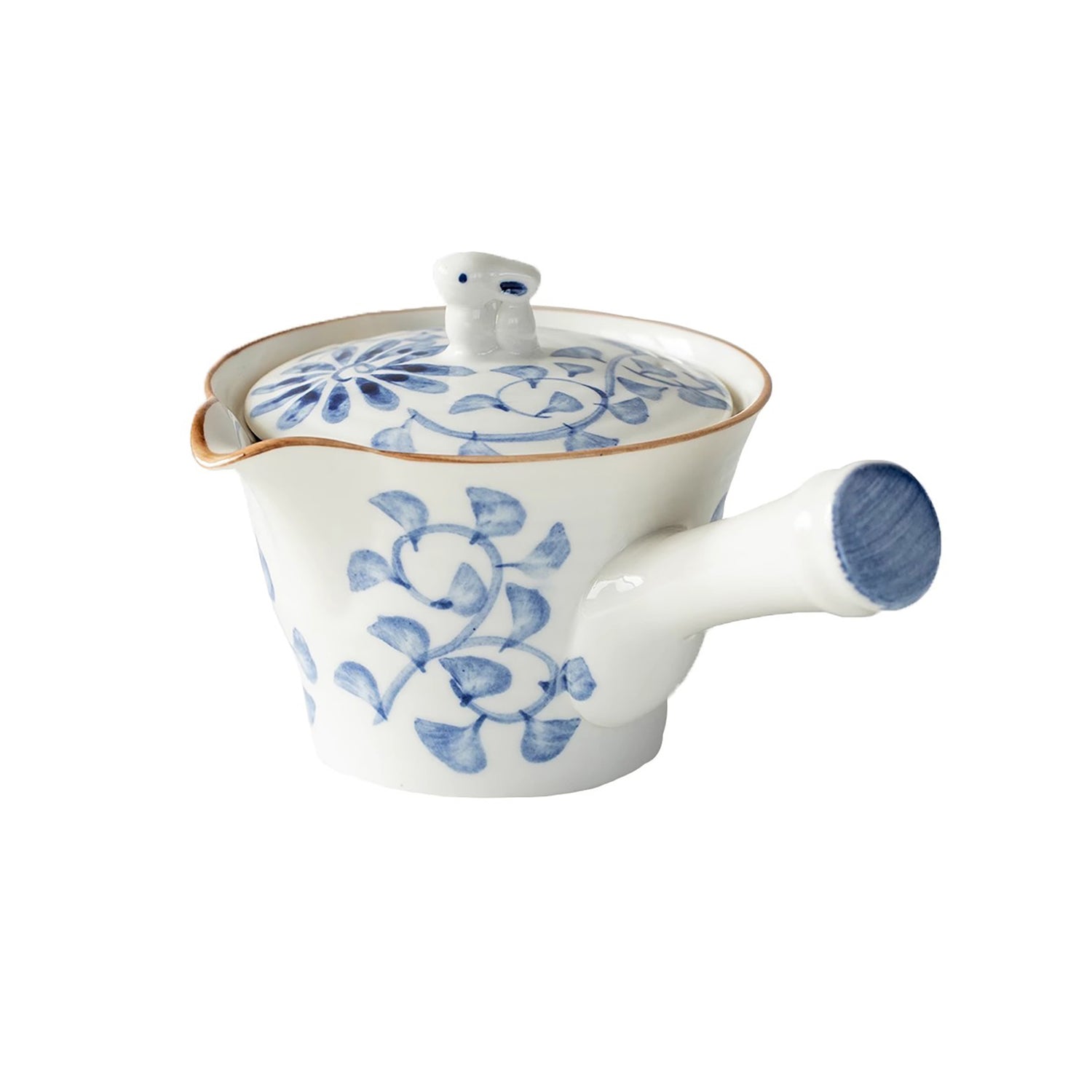 Cette théière kyusu en céramique Mino-yaki est fabriquée selon la technique traditionnelle de peinture sous émail sans plomb à haute température. Son motif arabesque peint à la main par un artisan reflète l’élégance du style japonais, tandis que le bouton en forme de petit lapin sur le couvercle ajoute une touche adorable et poétique. Parfaite pour une dégustation de thé empreinte de douceur, elle constitue également un cadeau raffiné et original.