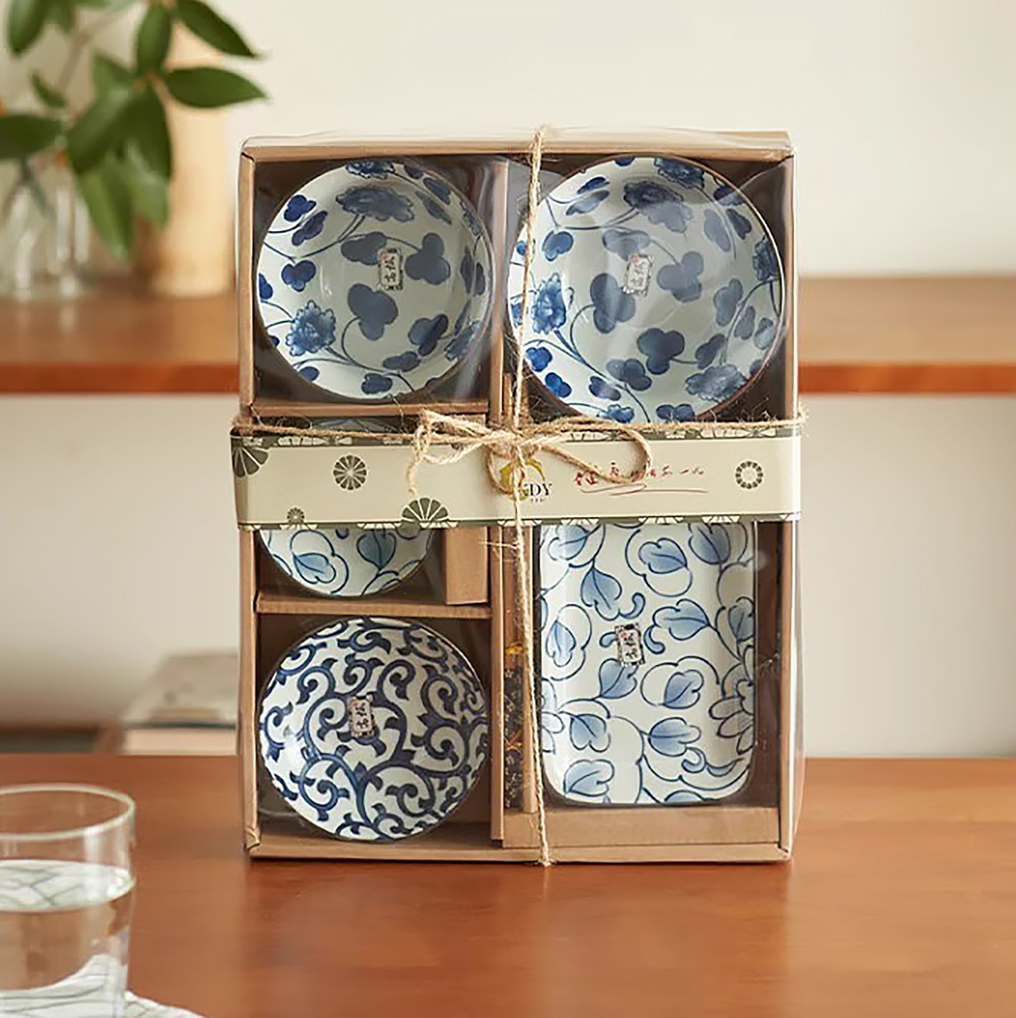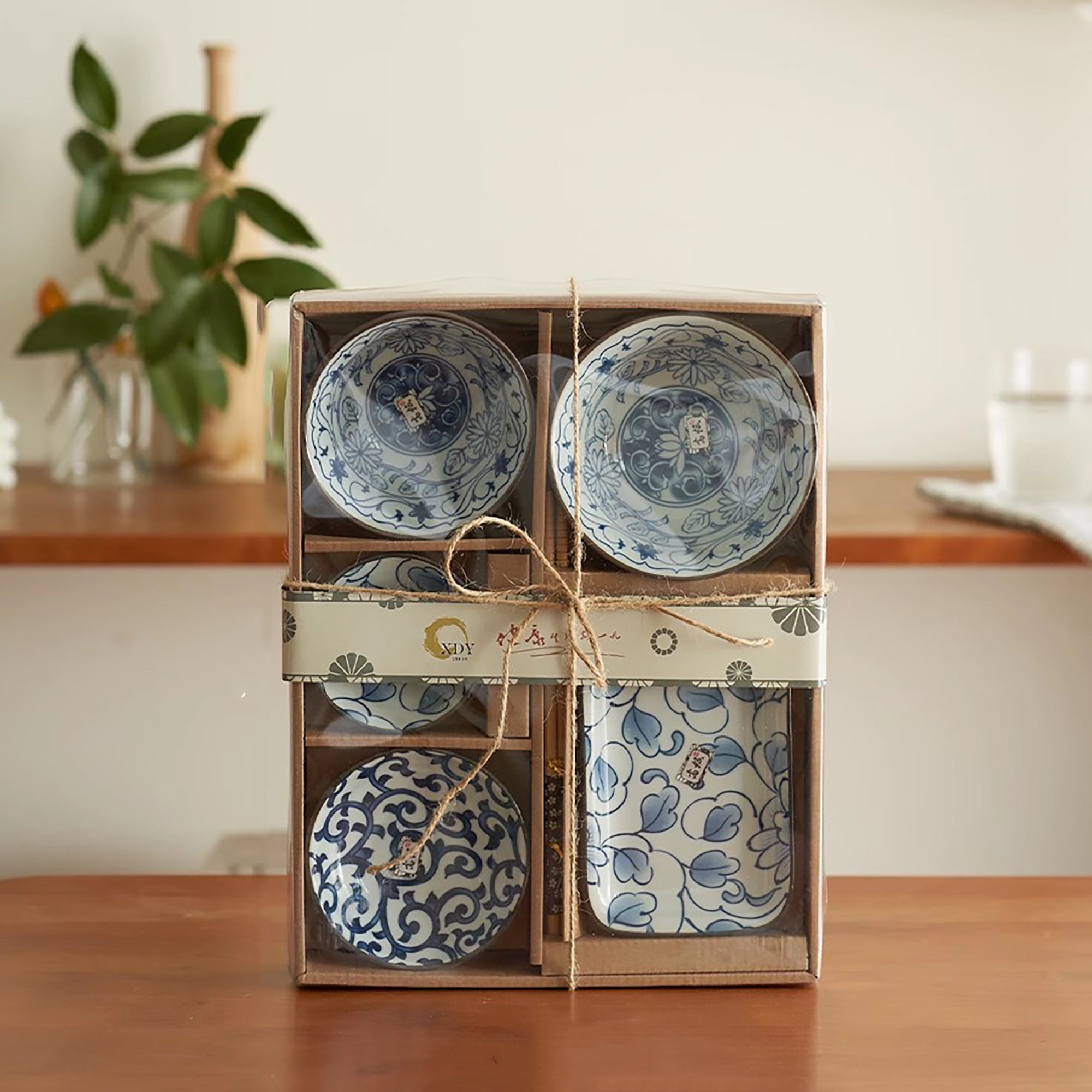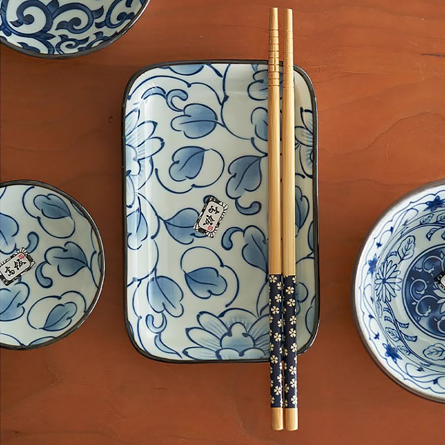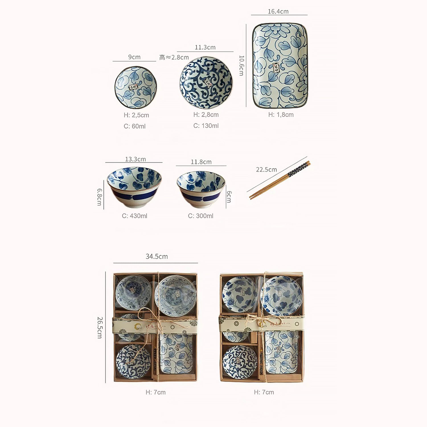 Ce service de table japonais pour une personne comprend deux bols, trois assiettes et une paire de baguettes, fabriqués en céramique selon la technique traditionnelle de cuisson à haute température avec émaillage sans plomb. Ornés de motifs japonais classiques, ils apportent une touche d’élégance et d’authenticité à votre table. Idéal pour un usage quotidien ou comme cadeau raffiné.