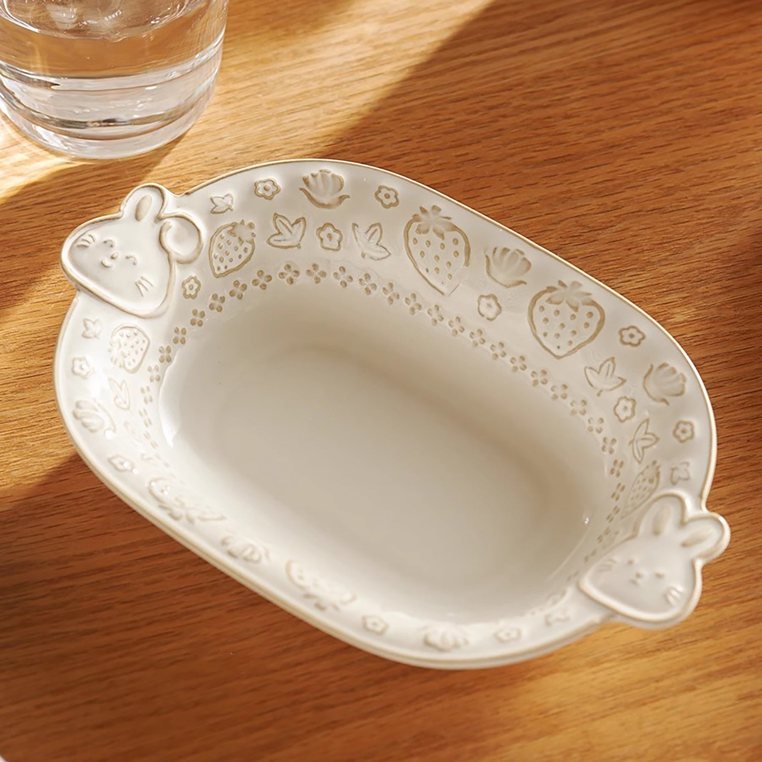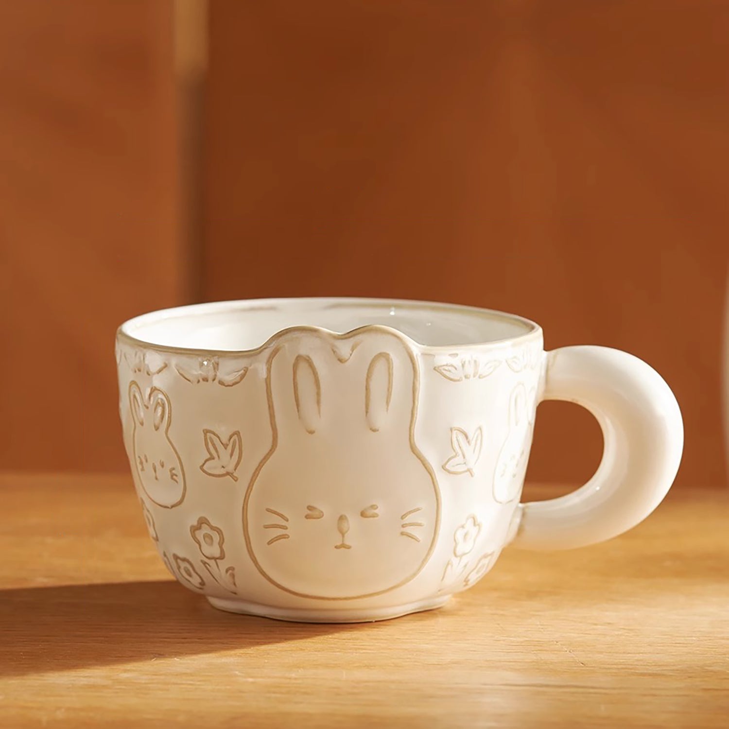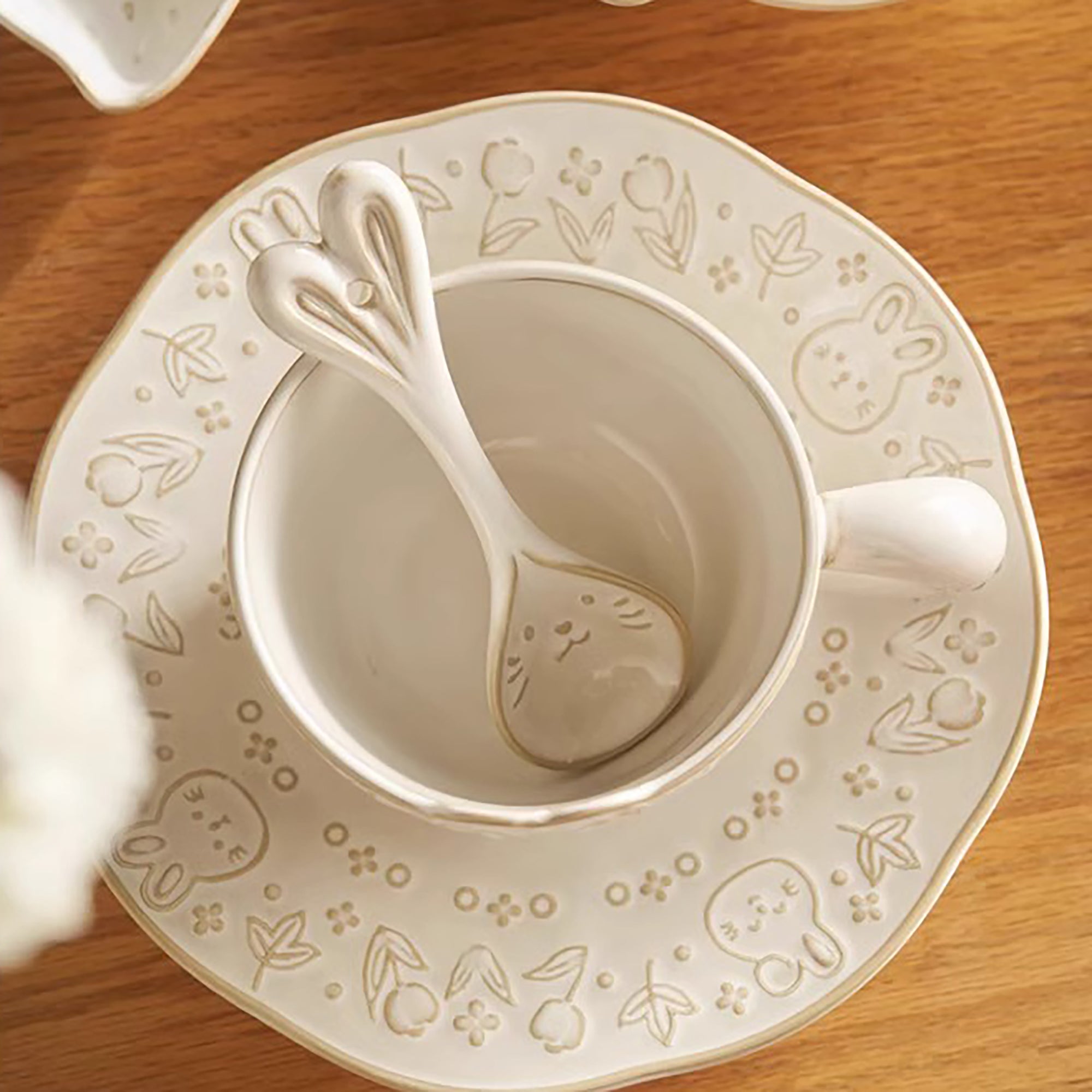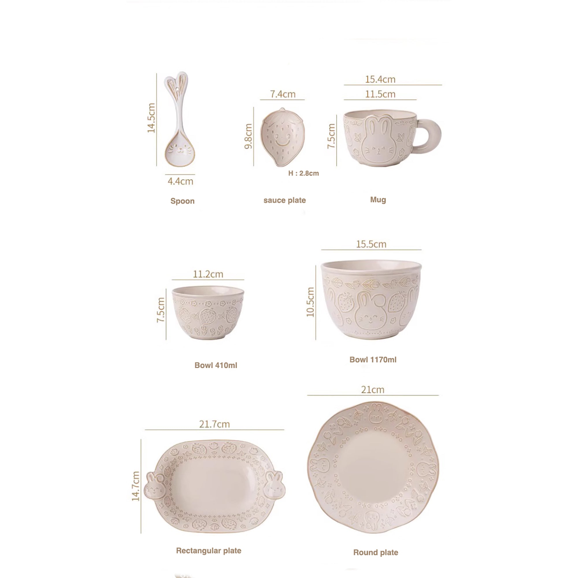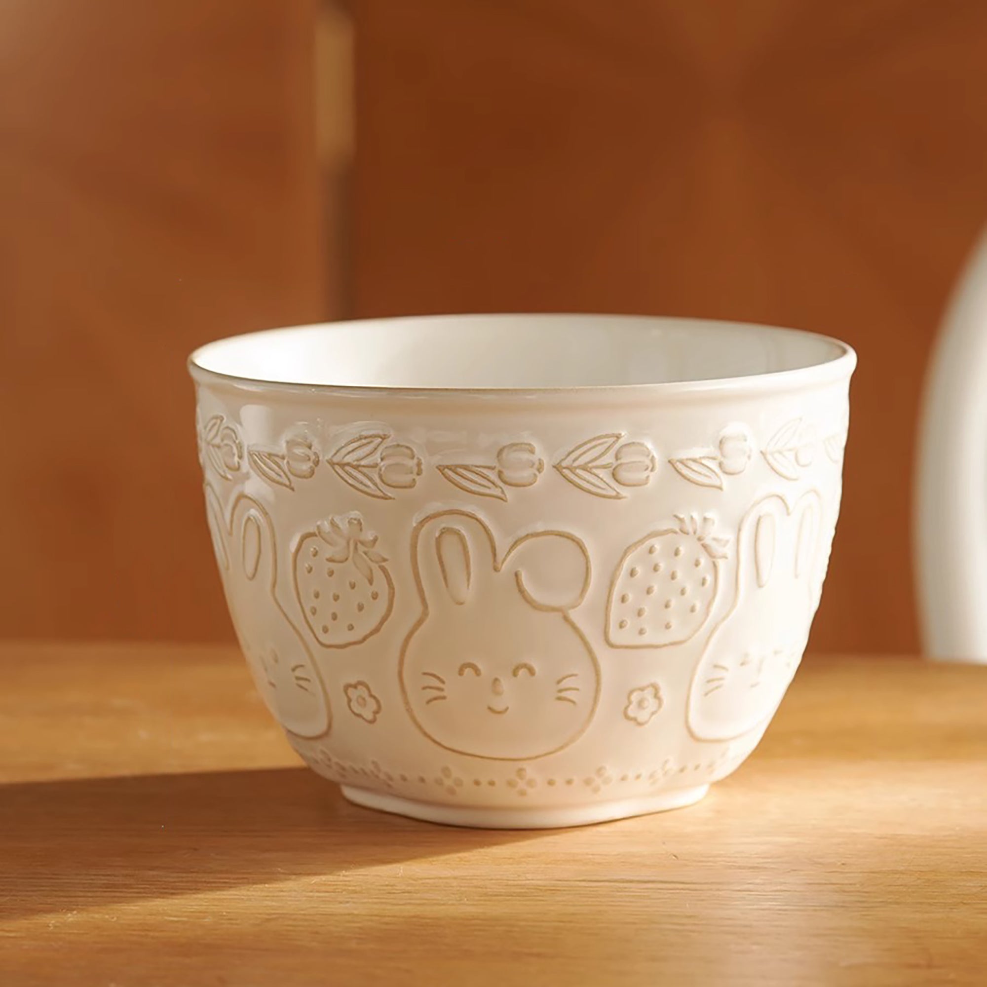 Cette vaisselle en céramique, fabriquée à la main à Jingdezhen selon une cuisson à haute température avec glaçure sans plomb, séduit par sa texture lisse et sa qualité artisanale. Le motif en relief représentant un petit lapin apporte une ambiance douce et féerique à votre table. À la fois fonctionnelle et décorative, elle est idéale pour les repas quotidiens comme pour offrir un cadeau plein de tendresse.