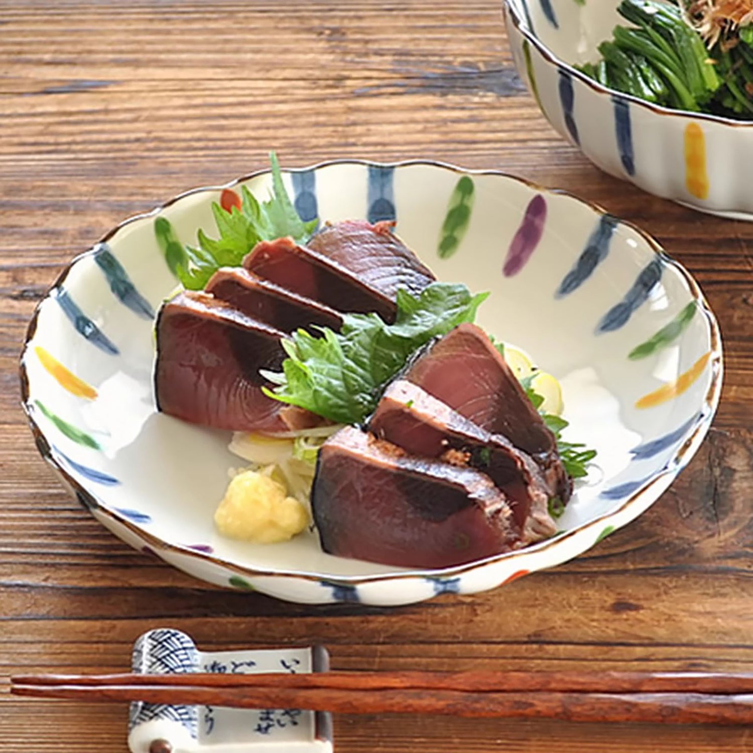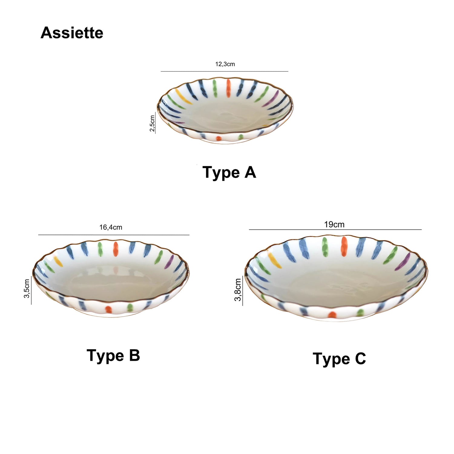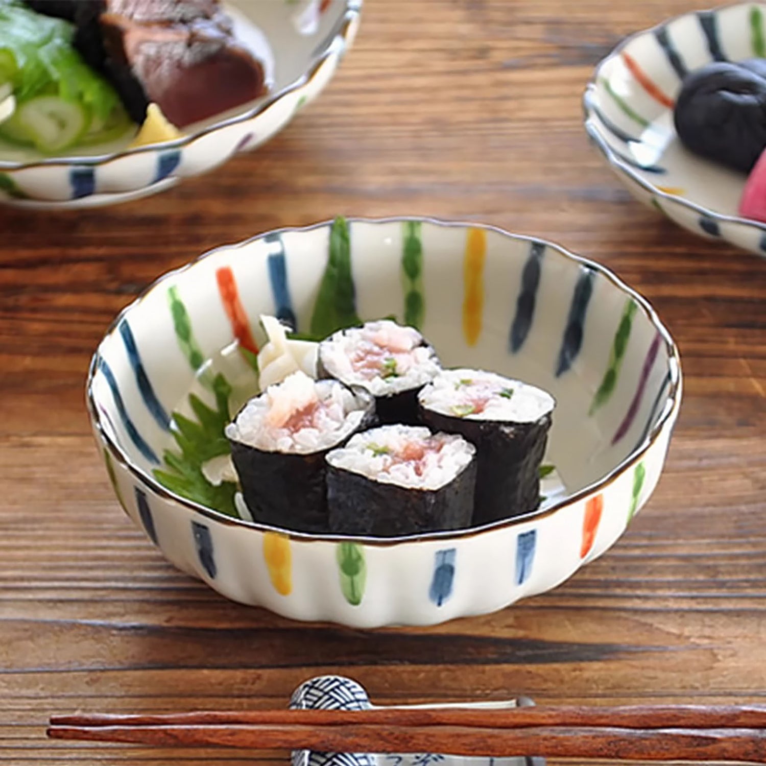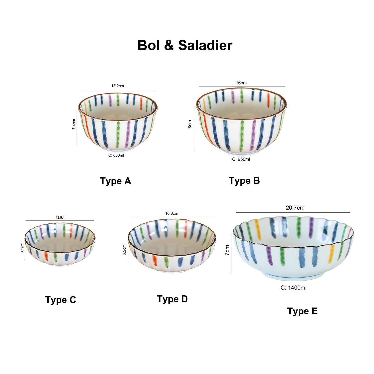 Apportez une explosion de couleurs à votre table avec cette vaisselle en céramique Minoyaki ornée du motif Tokusa aux teintes arc-en-ciel, entièrement peint à la main. Ce design raffiné incarne le style traditionnel japonais et évoque l'ambiance élégante des restaurants japonais haut de gamme.