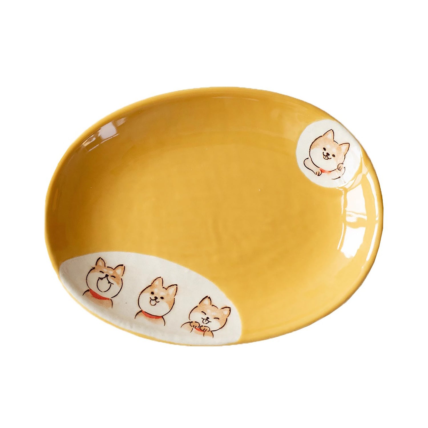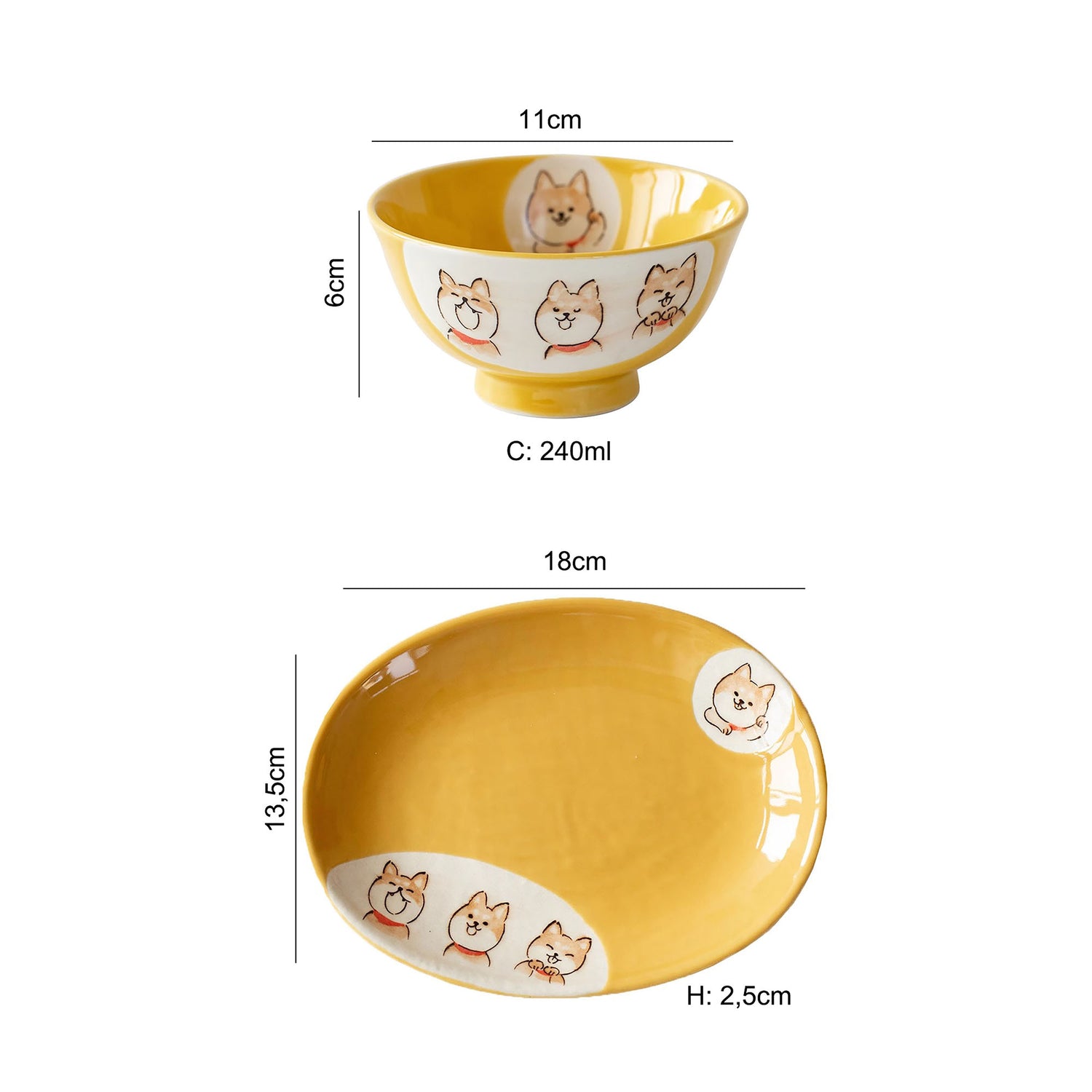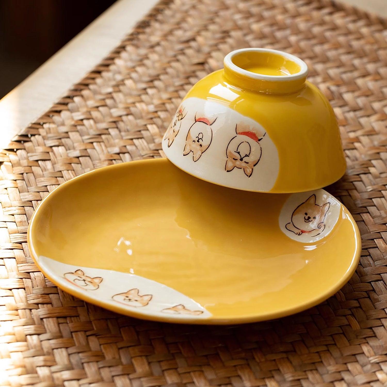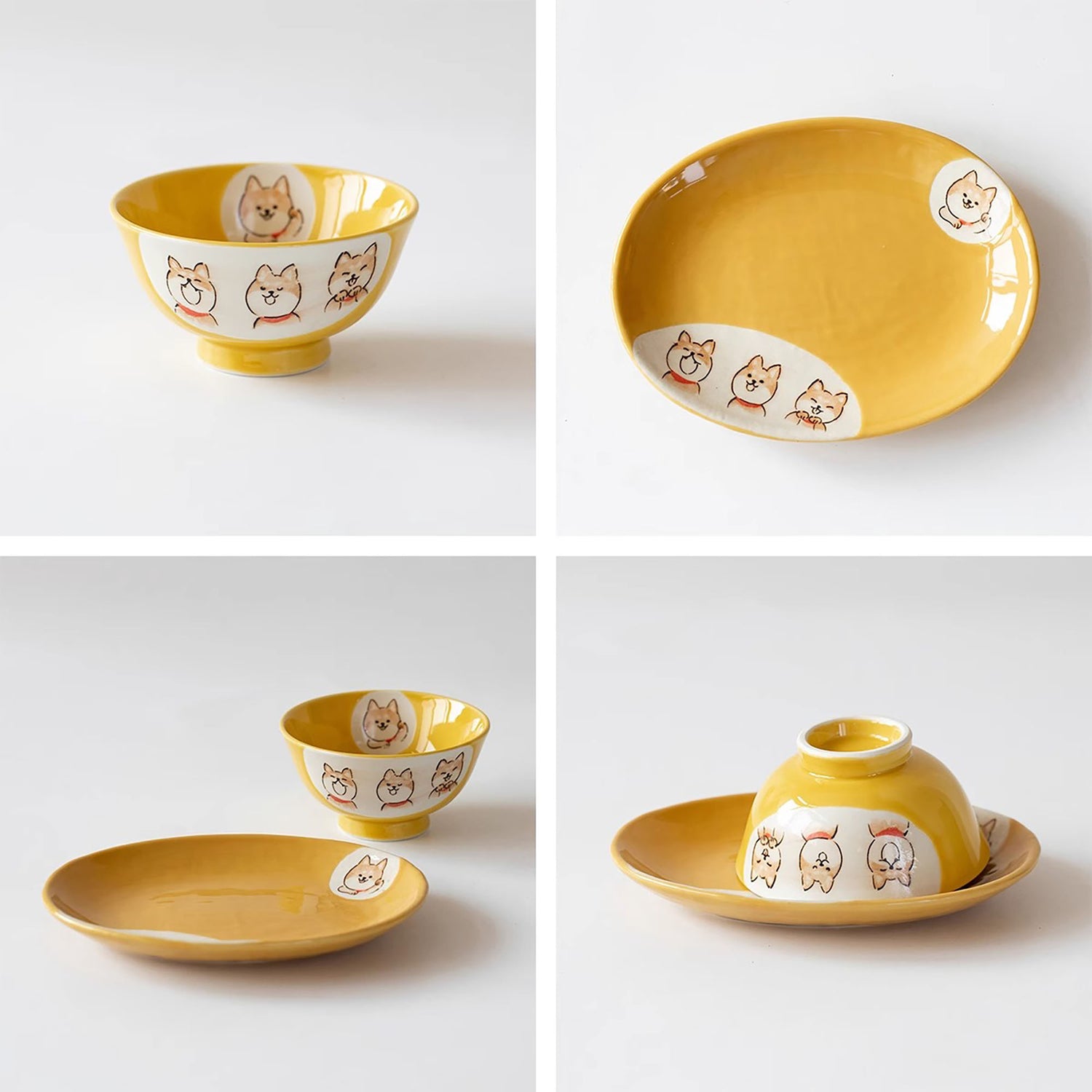 Cette vaisselle en céramique Setoyaki séduit par son émail jaune chaleureux et son adorable motif de Shiba Inu peint à la main, apportant une atmosphère douce et réconfortante à votre table.