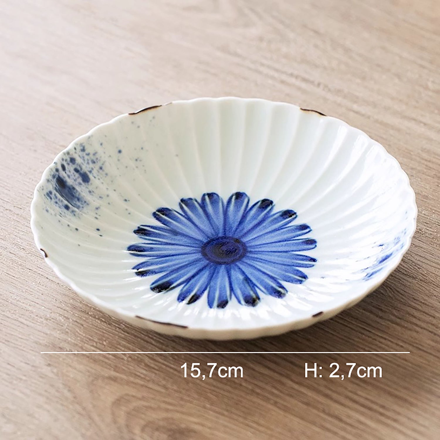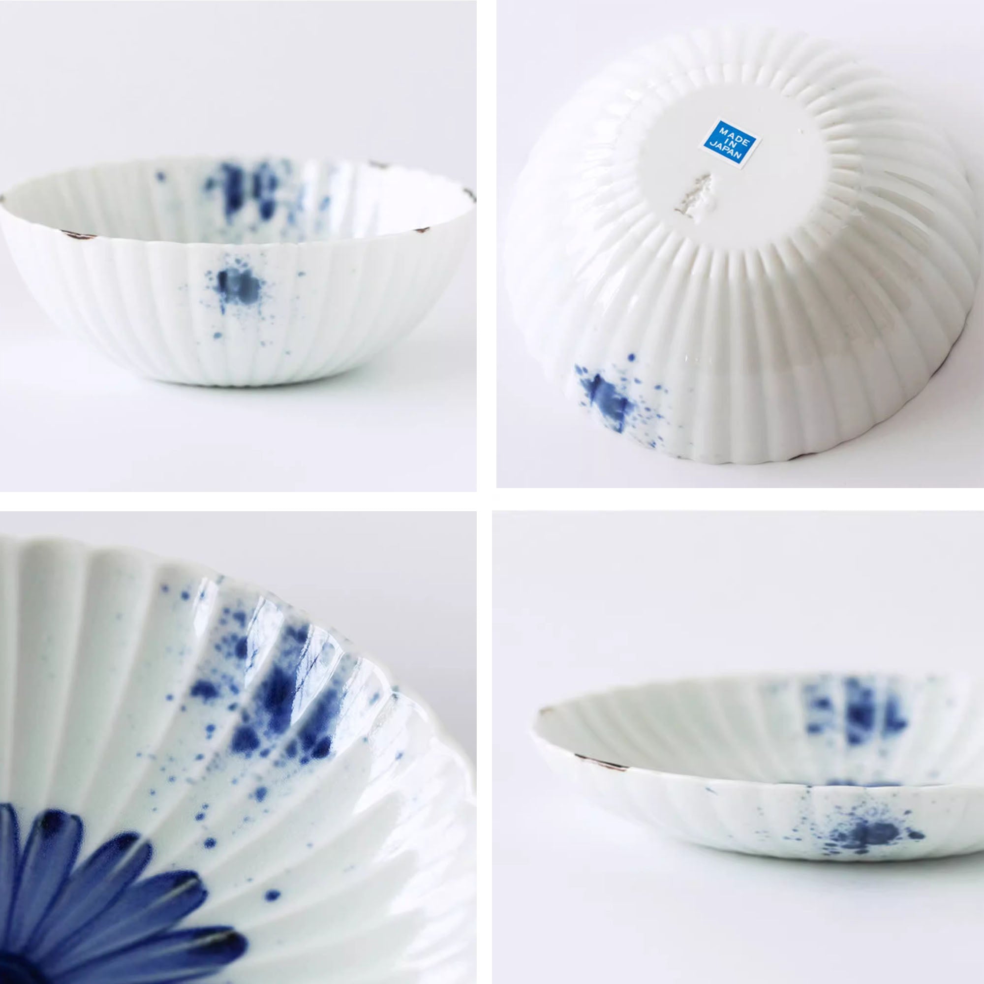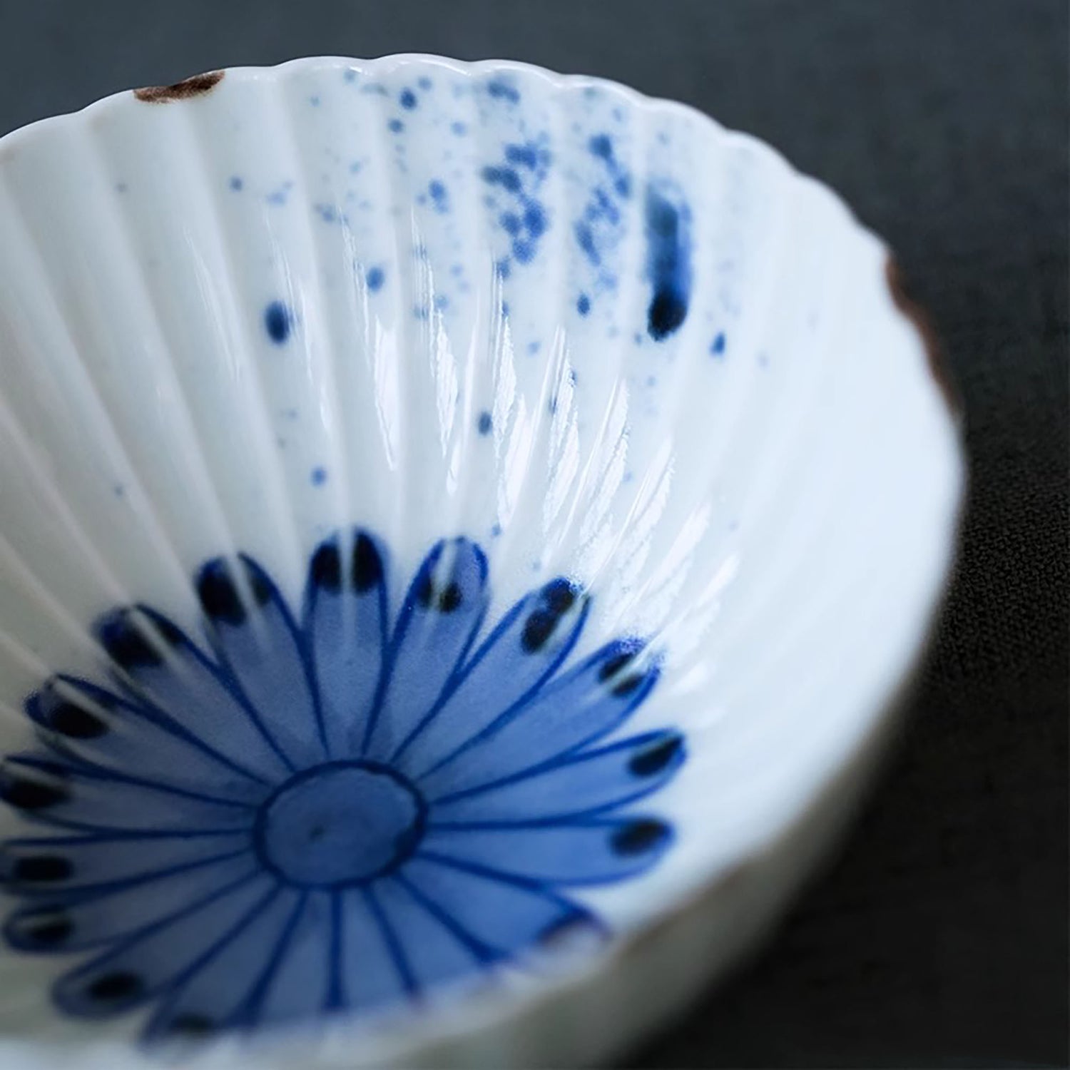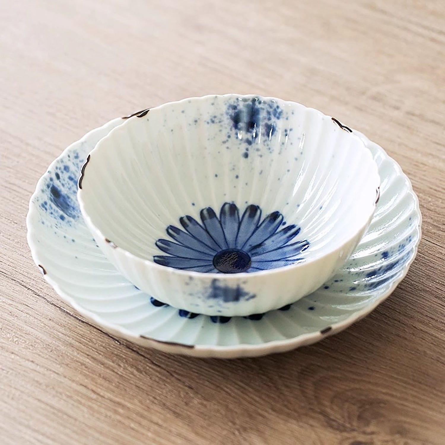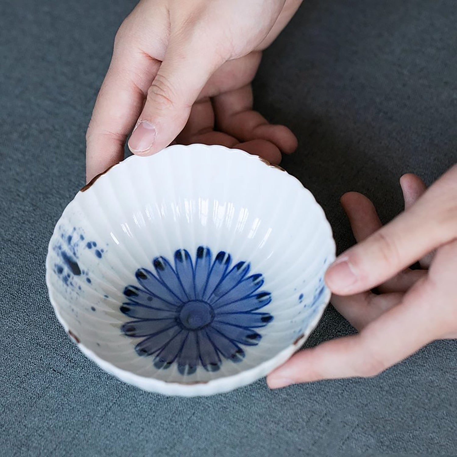 Cette vaisselle raffinée, fabriquée par Izumiju Kiln en Arita-yaki, est réalisée selon la technique traditionnelle de cuisson à haute température avec émaillage sans plomb sous glaçure. Le motif de chrysanthème bleu, délicatement peint à la main par les artisans, s’épanouit au centre de chaque pièce, apportant une élégance subtile et une touche artistique unique.