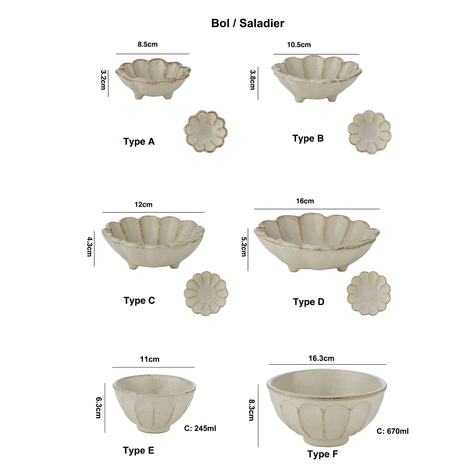 - Type E(bol à riz)245ml : L 11cm x H 6.3cm