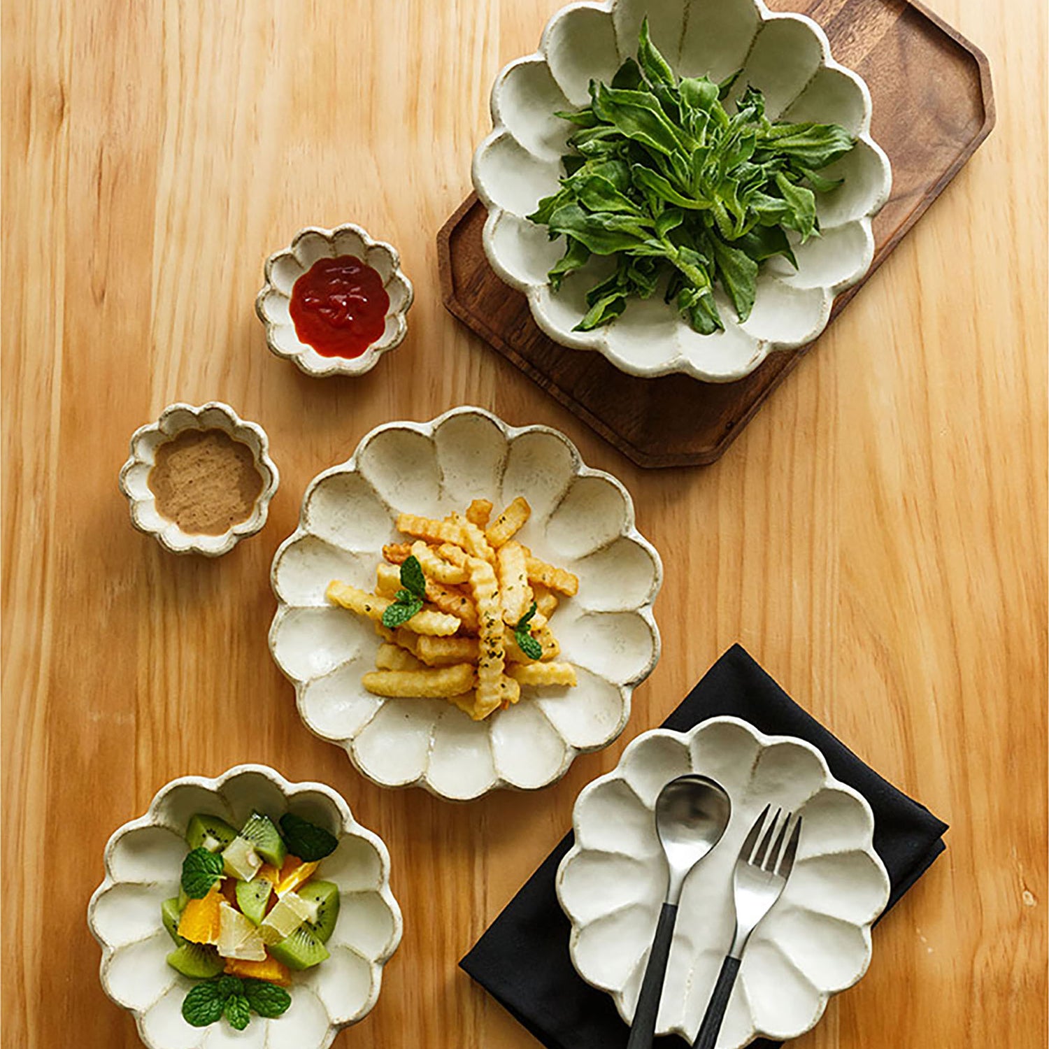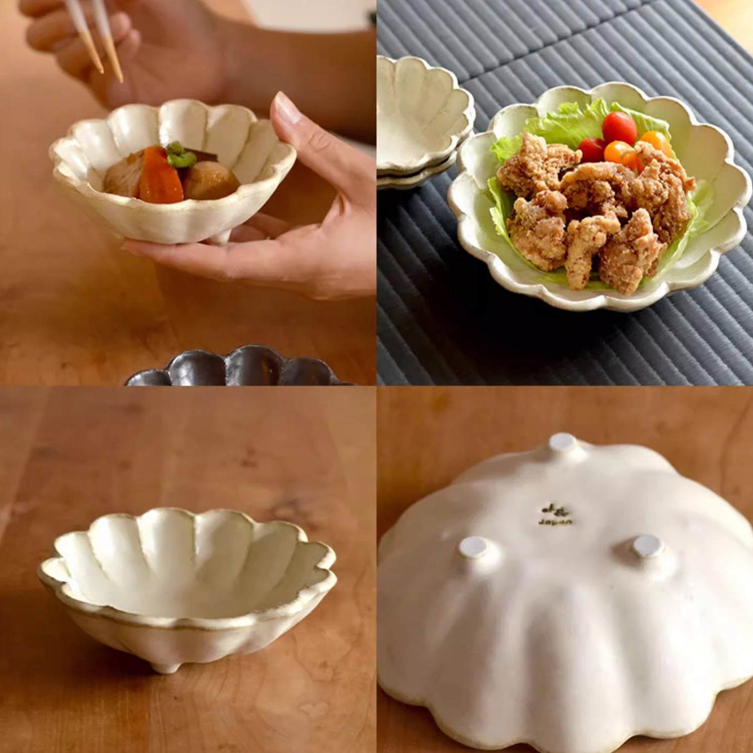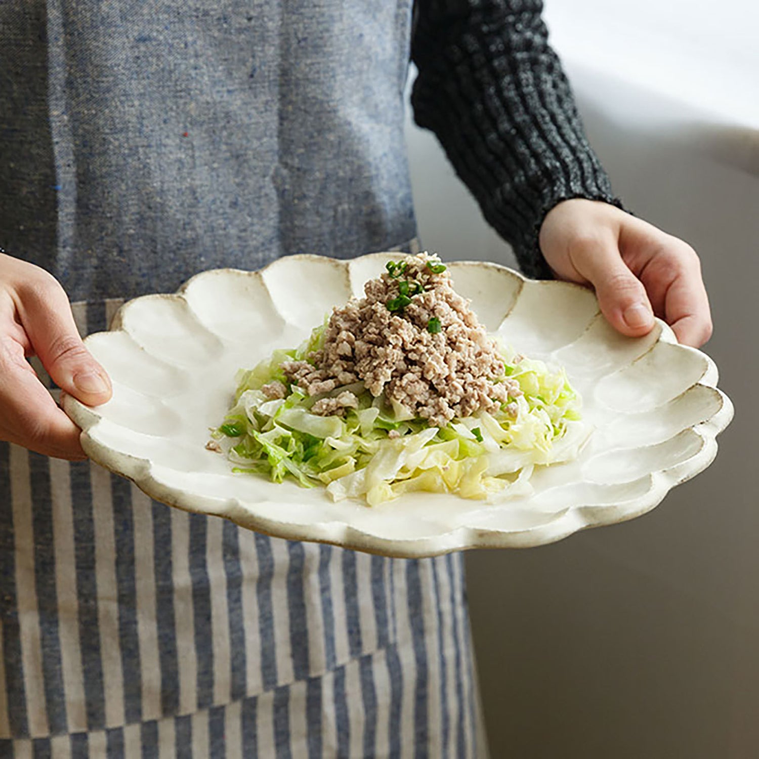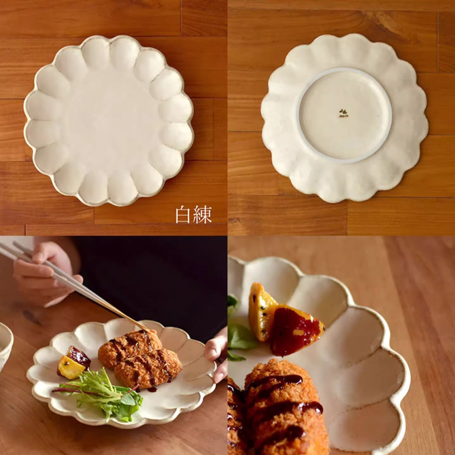 Ce service de table en céramique, créé par l'atelier Rinka Seito dans la région de Mino au Japon, comprend une variété d'assiettes et de bols de différentes tailles pour répondre aux besoins quotidiens. Le design minimaliste en forme de pétales de fleur de poirier, signature de l'atelier, est associé à des textures vieillies faites à la main, reflétant une beauté douce et sobre. Chaque pièce, cuite à haute température sous émail, allie praticité et durabilité, tout en apportant une touche romantique du style japonais à votre table. Idéal pour un usage quotidien ou des occasions spéciales, cet ensemble transforme chaque repas en une expérience japonaise authentique et élégante.