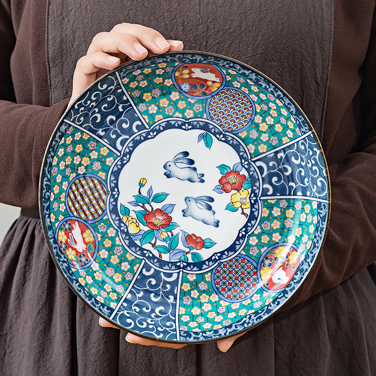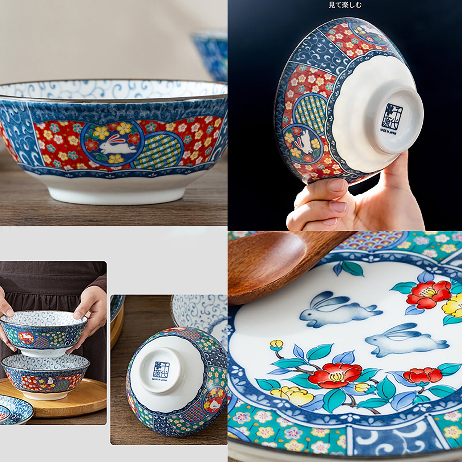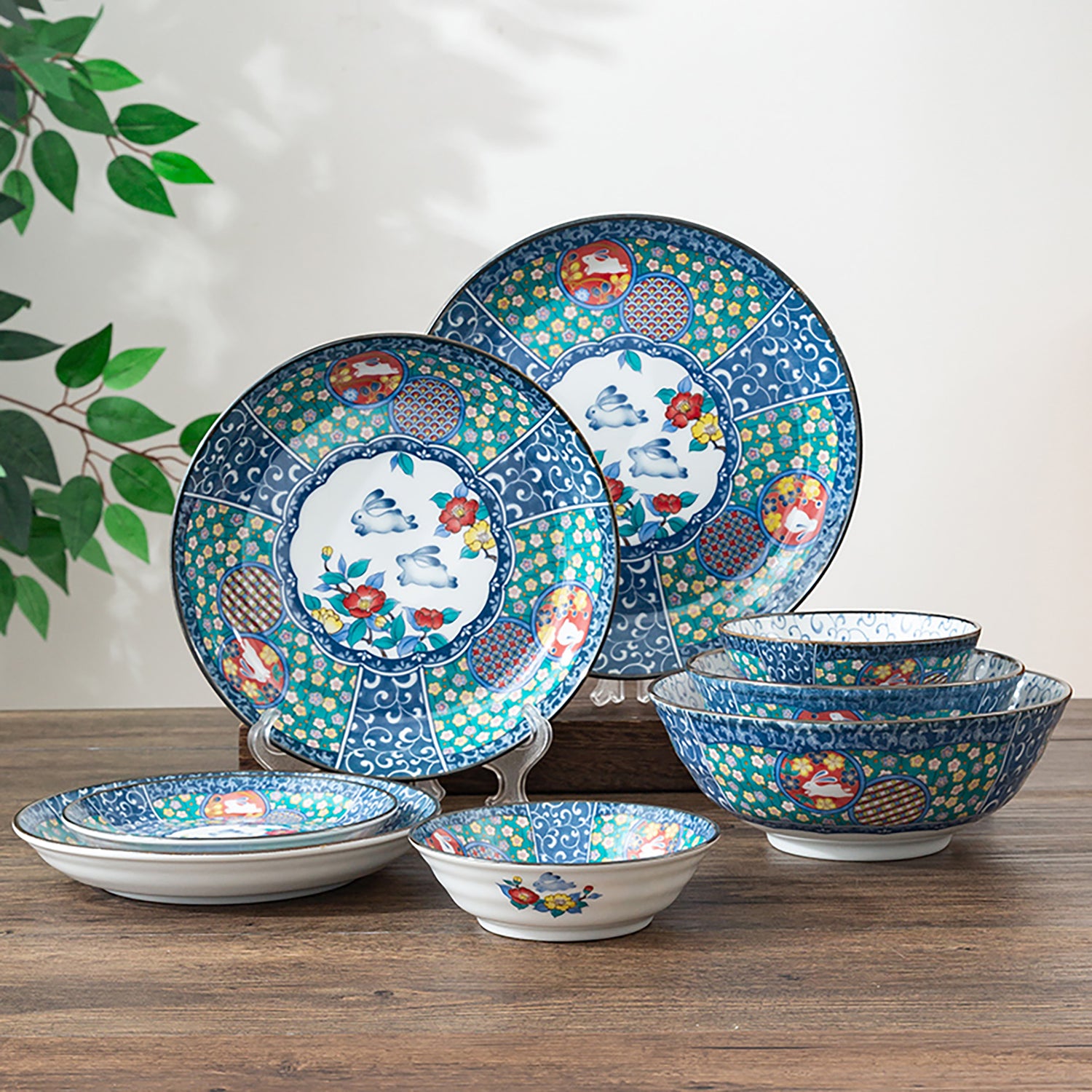 Ce service de table en céramique, fabriqué par la maison Kutani au Japon, comprend une variété d'assiettes et de bols de différentes tailles pour répondre aux besoins quotidiens. Orné de motifs floraux traditionnels japonais richement détaillés et de petits lapins adorables, ce service est un hommage à la beauté et à la délicatesse du style japonais. La céramique, soigneusement sélectionnée et cuite à haute température sous émail, est d'une blancheur éclatante, presque translucide, évoquant la pureté du jade. Cet ensemble apporte une touche de romantisme japonais à votre table, transformant chaque repas en une expérience chaleureuse et raffinée.