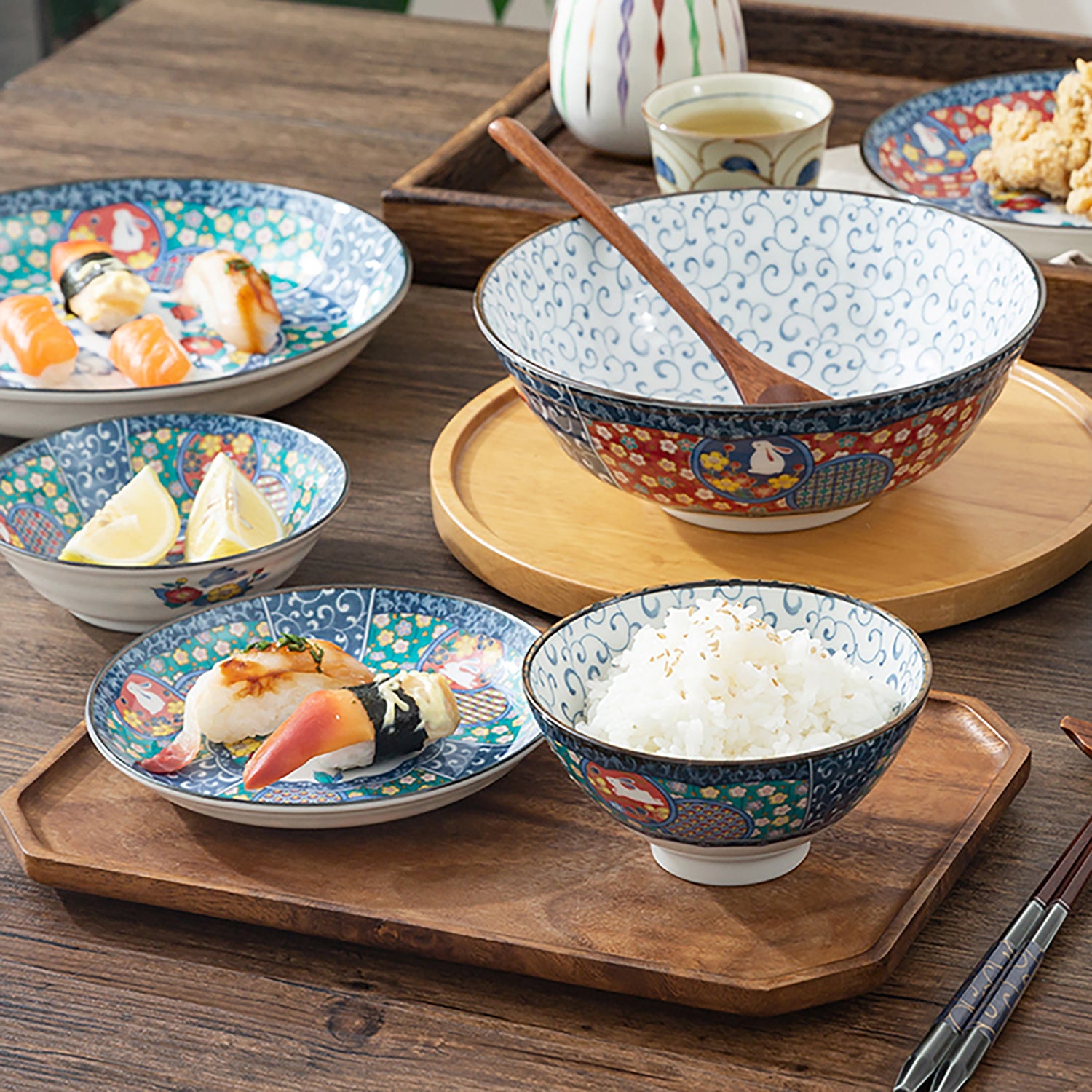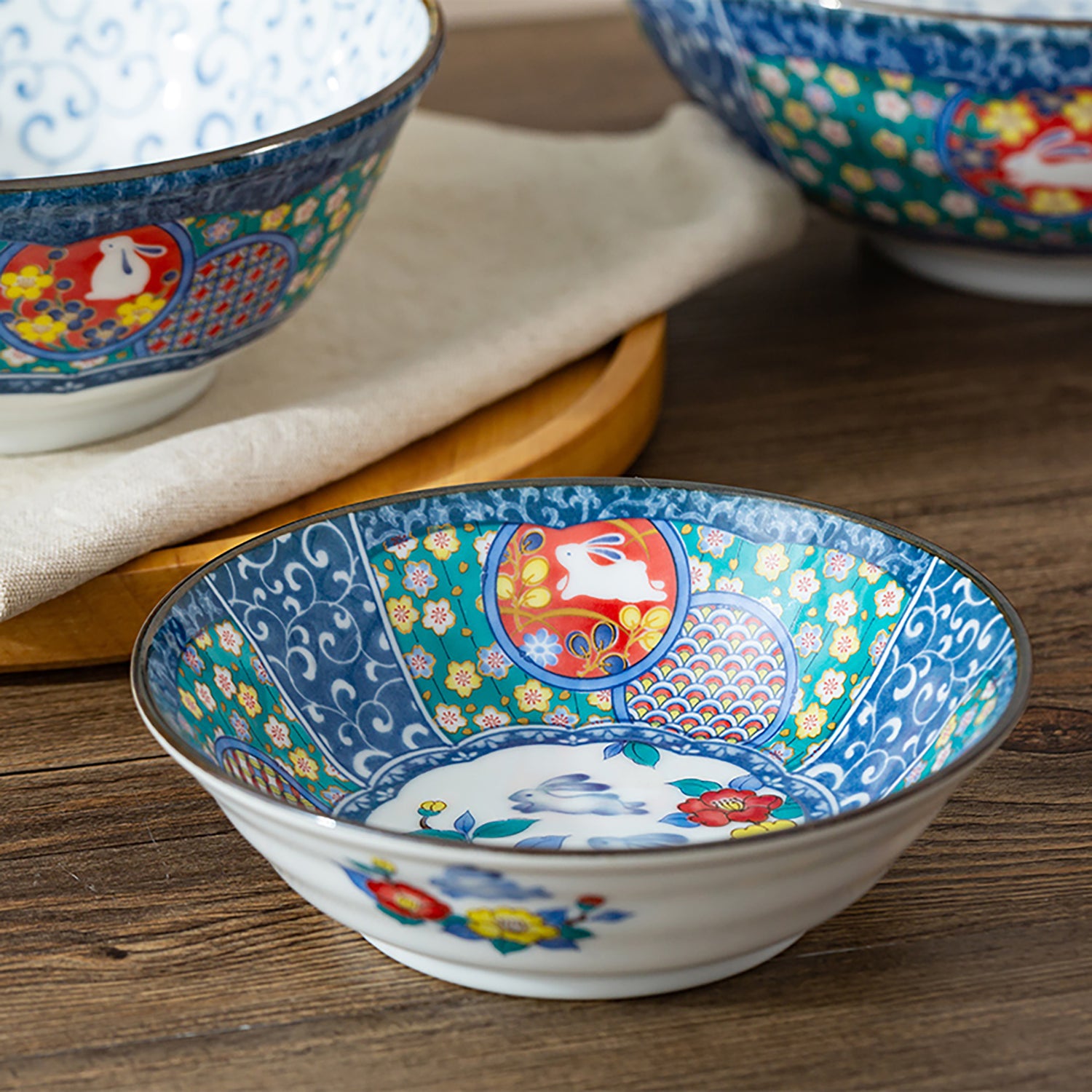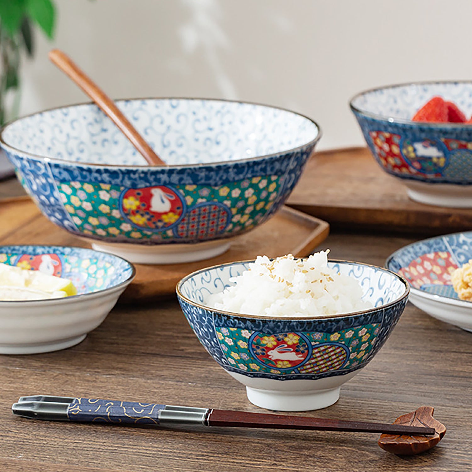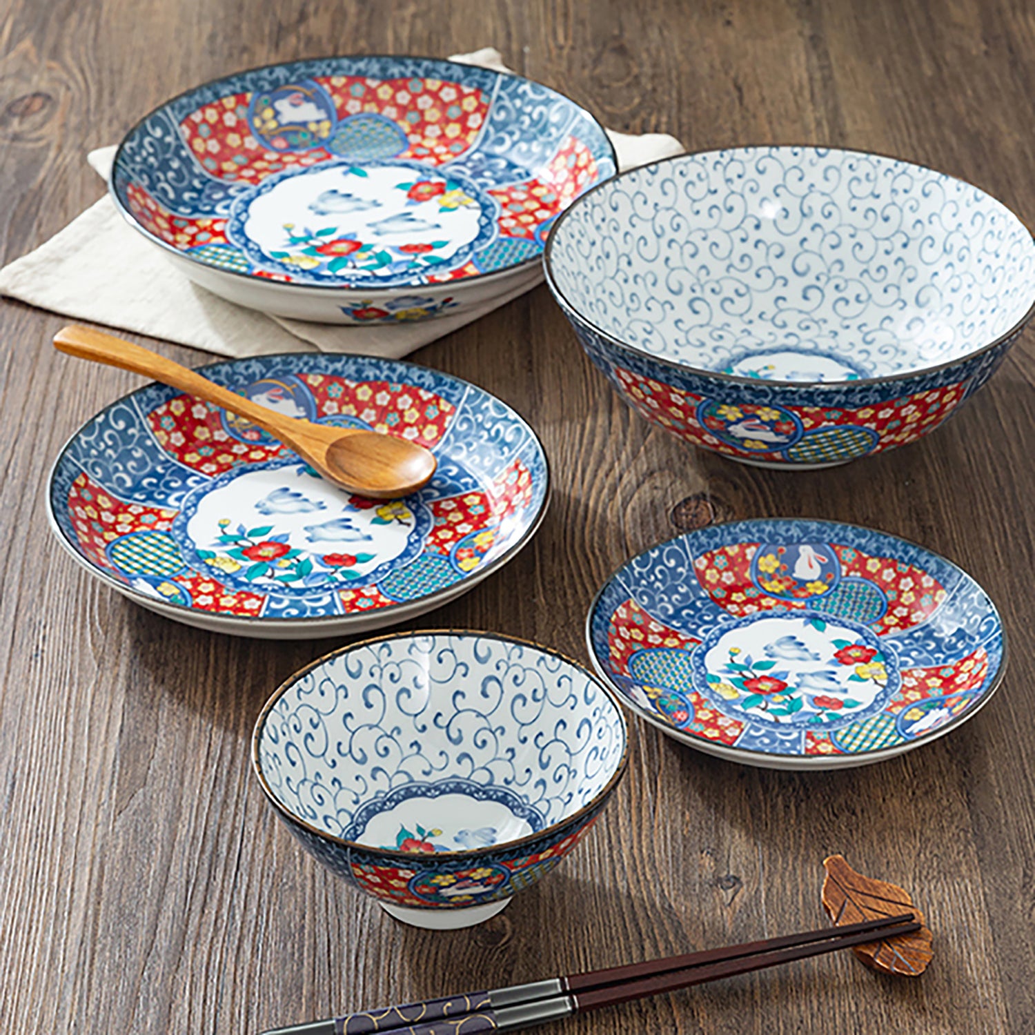 Ce service de table en céramique, fabriqué par la maison Kutani au Japon, comprend une variété d'assiettes et de bols de différentes tailles pour répondre aux besoins quotidiens. Orné de motifs floraux traditionnels japonais richement détaillés et de petits lapins adorables, ce service est un hommage à la beauté et à la délicatesse du style japonais. La céramique, soigneusement sélectionnée et cuite à haute température sous émail, est d'une blancheur éclatante, presque translucide, évoquant la pureté du jade. Cet ensemble apporte une touche de romantisme japonais à votre table, transformant chaque repas en une expérience chaleureuse et raffinée.