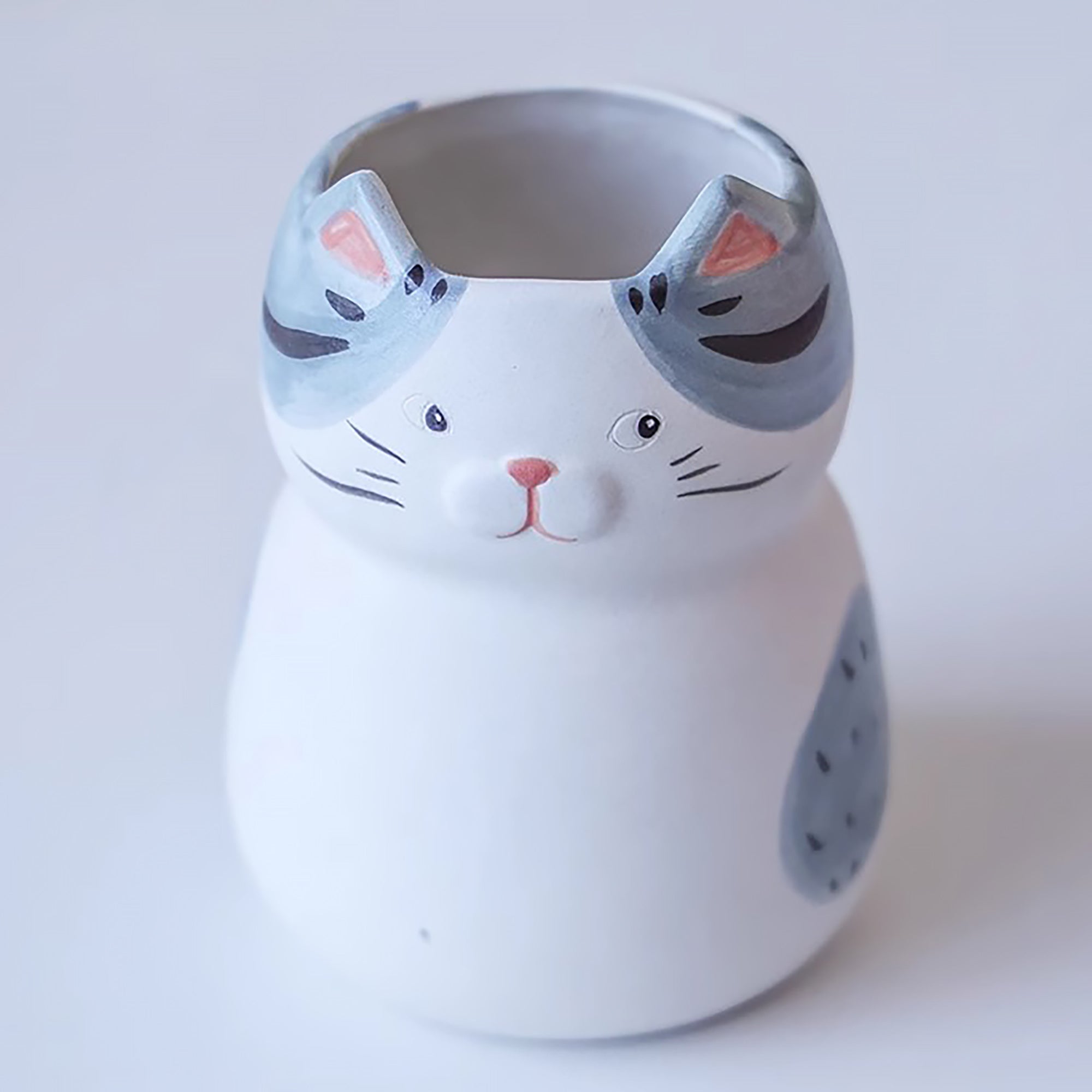 Ce vase en céramique, fabriqué à la main à Jingdezhen, est cuit à haute température avec un émail sans plomb sous glaçure. Sa forme de chat adorable et ses motifs peints à la main apportent une touche de douceur et de fantaisie à votre intérieur. Parfait avec des fleurs fraîches ou séchées, ou simplement comme objet décoratif, il illumine chaque coin de votre maison avec tendresse.