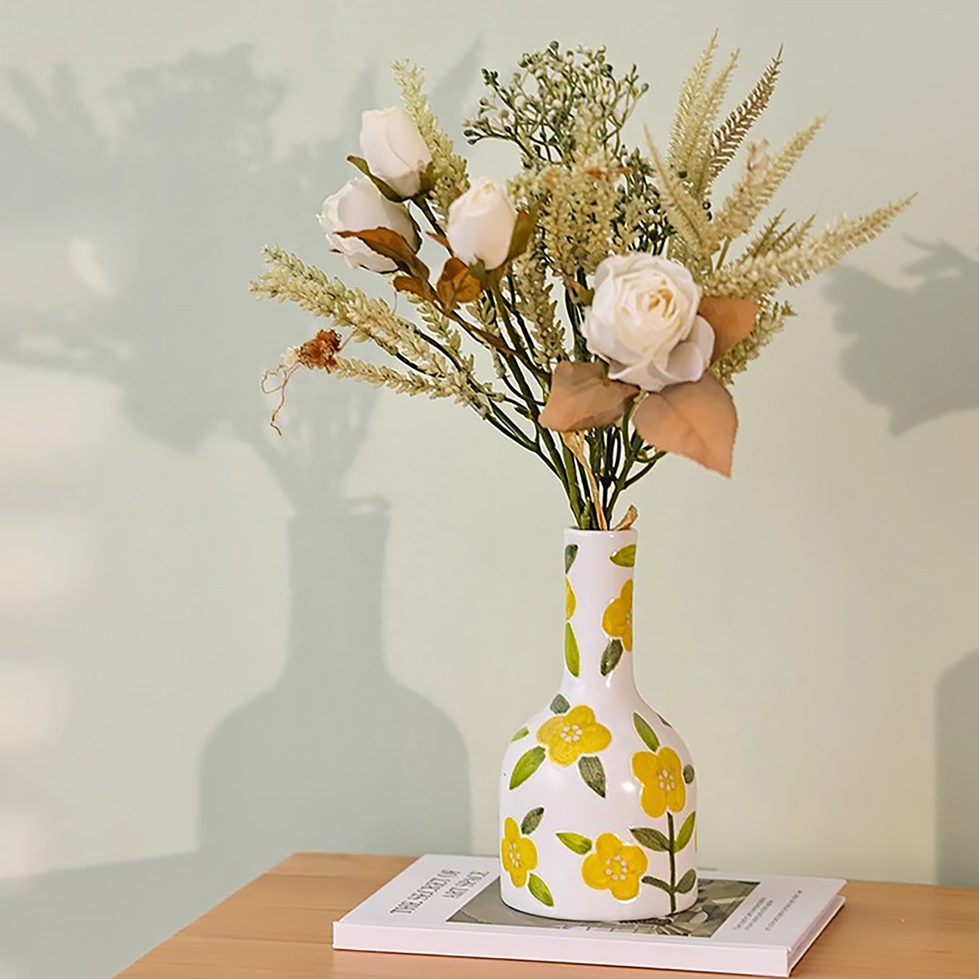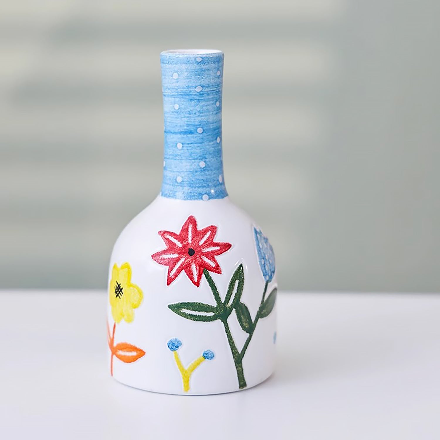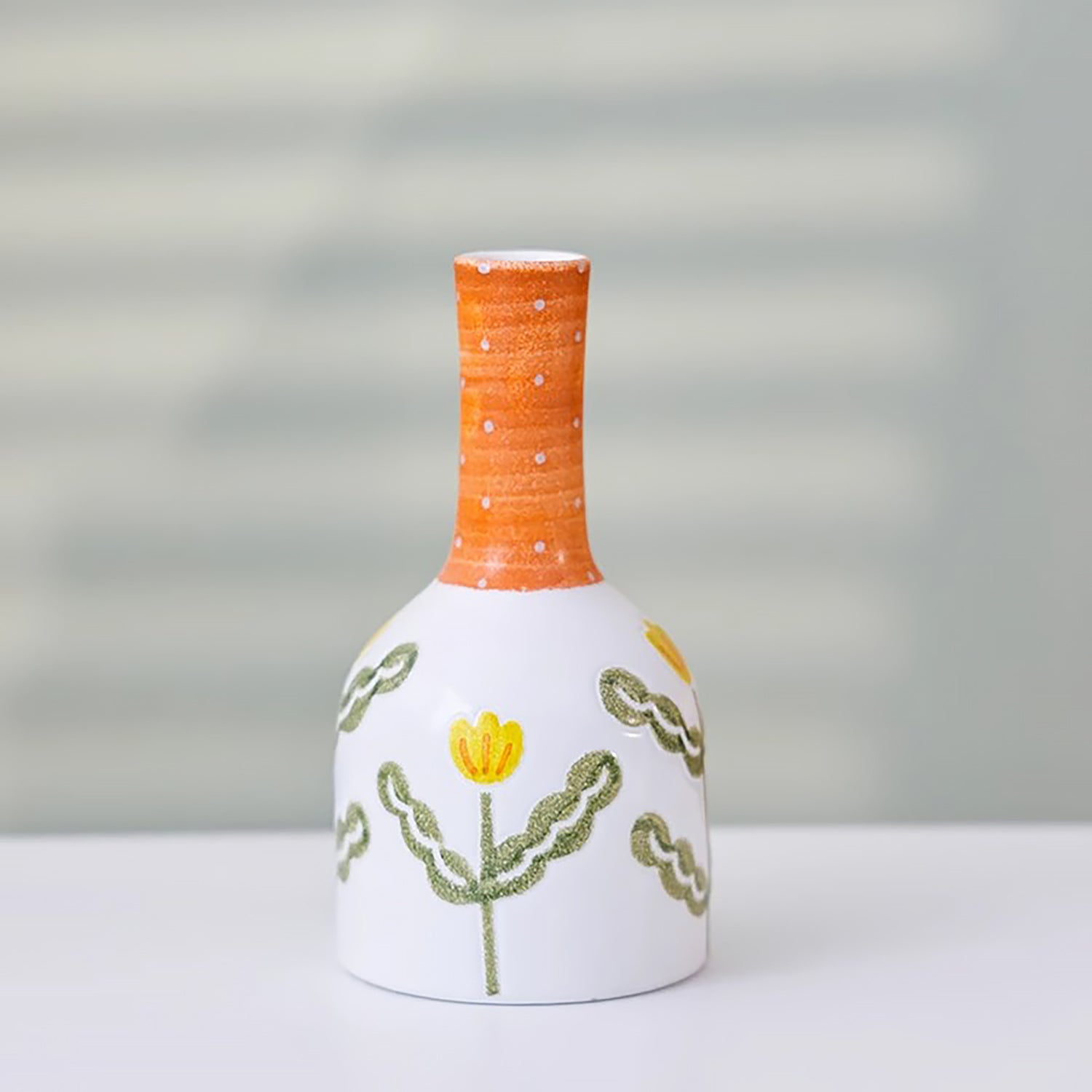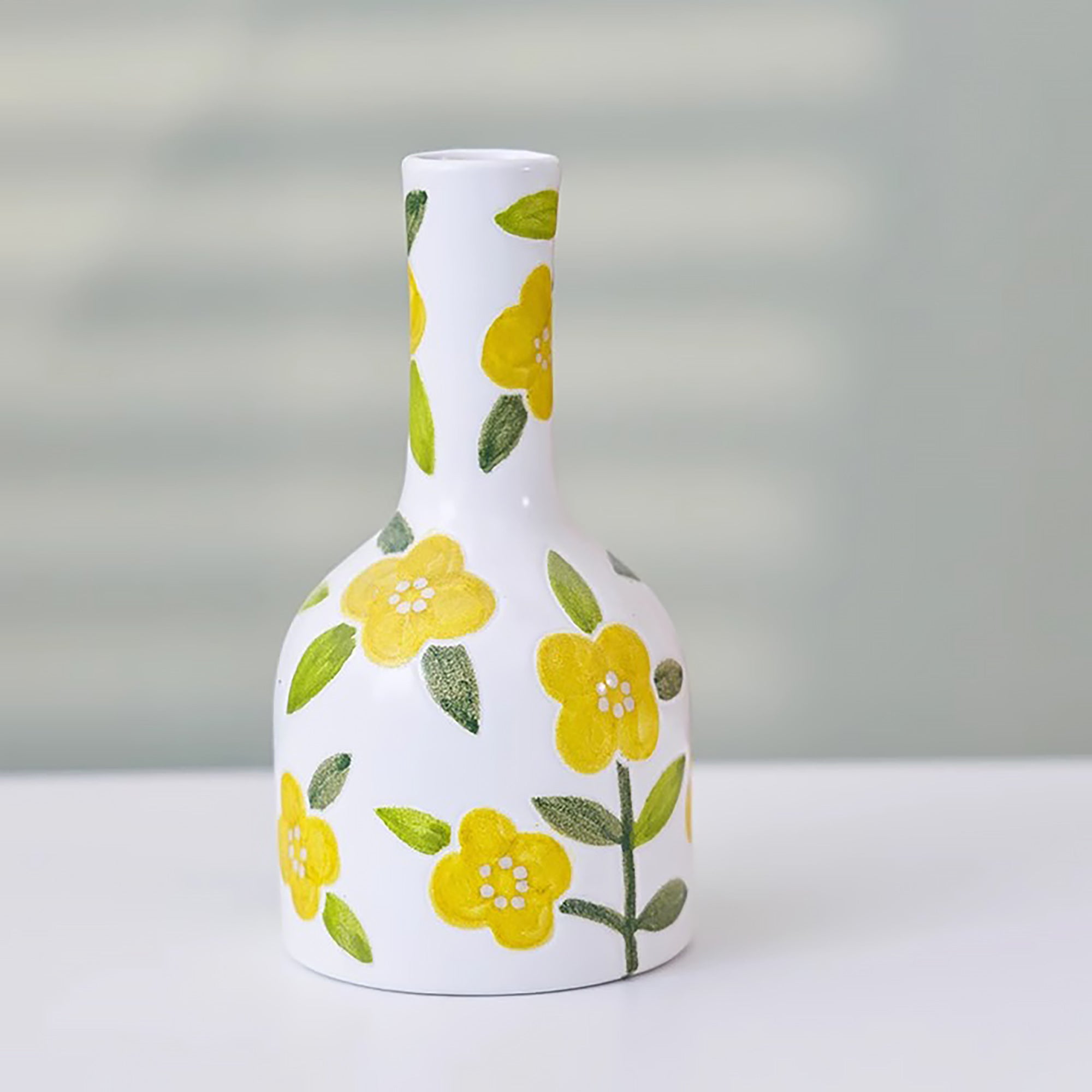 Petit vase en céramique fabriqué à la main à Jingdezhen, avec des courbes douces et élégantes. Réalisé en émail sans plomb à haute température, et orné de motifs floraux peints à la main. Idéal comme vase décoratif ou petit objet artistique pour le salon ou le bureau.