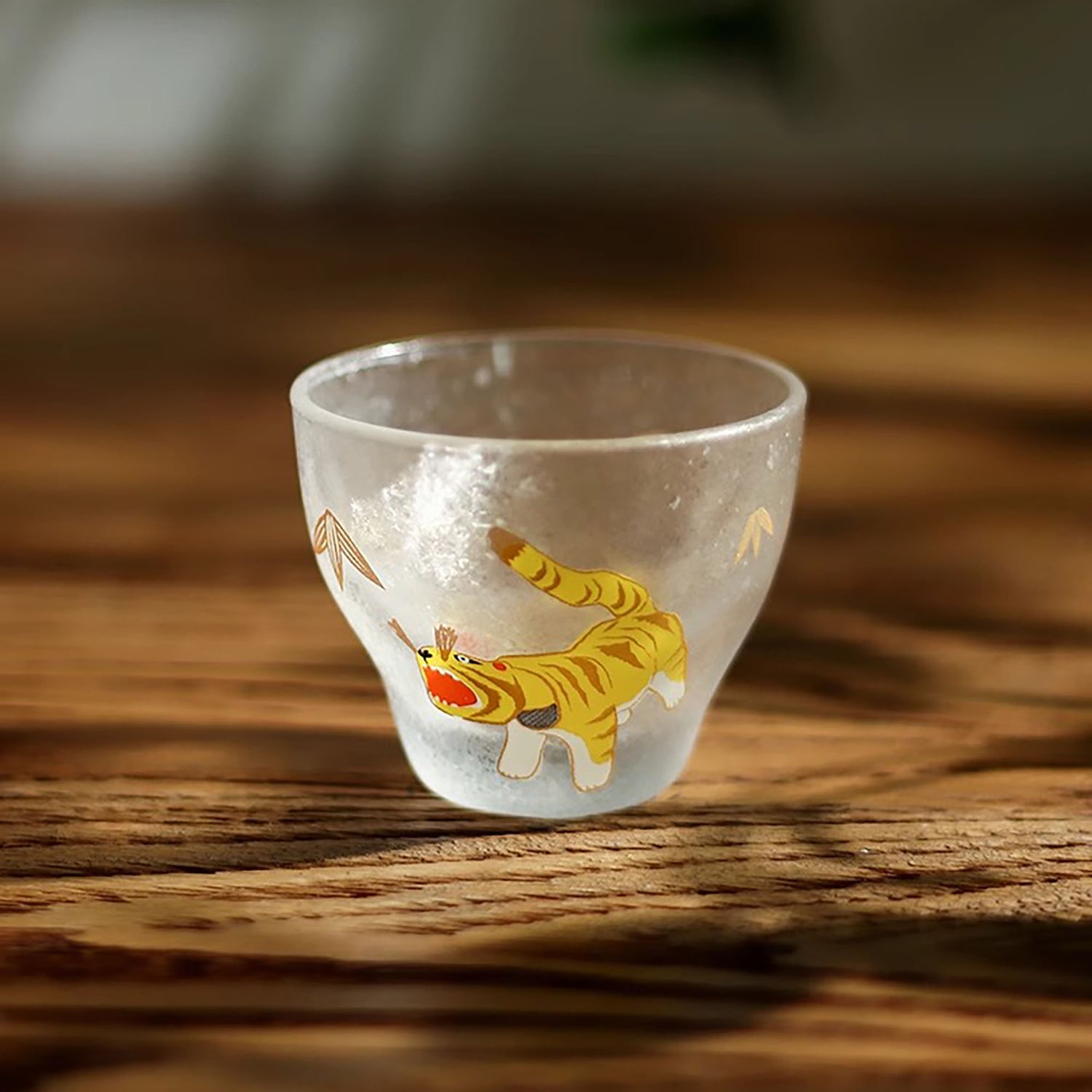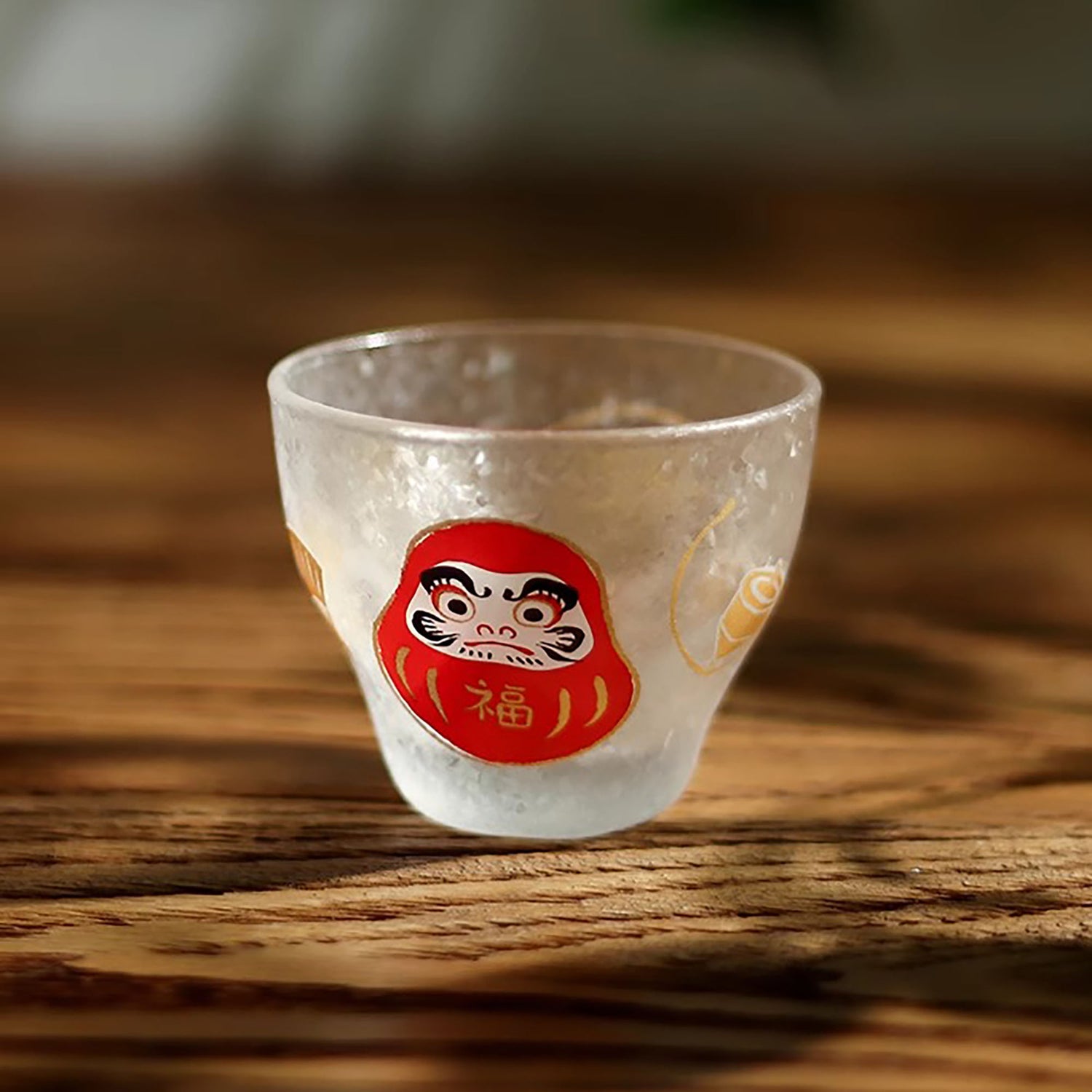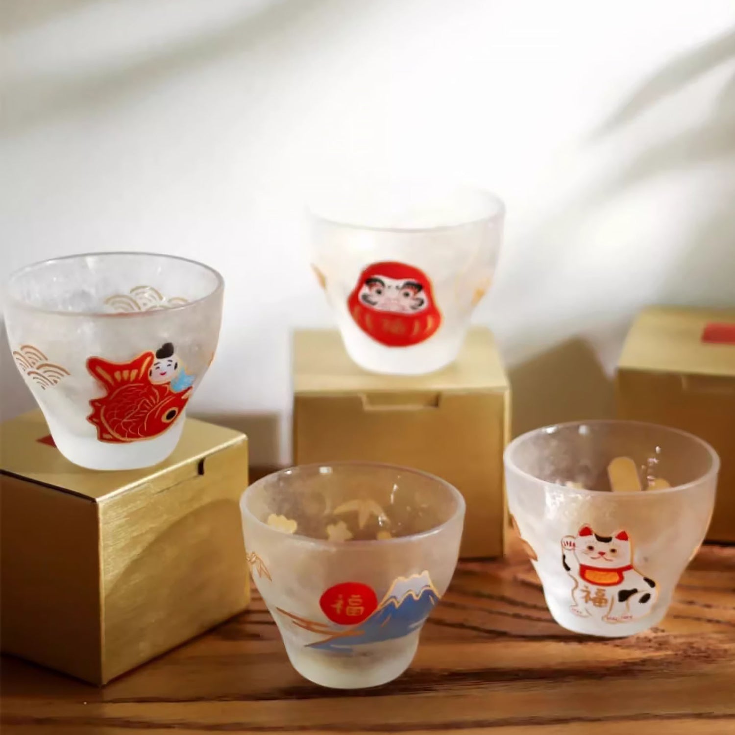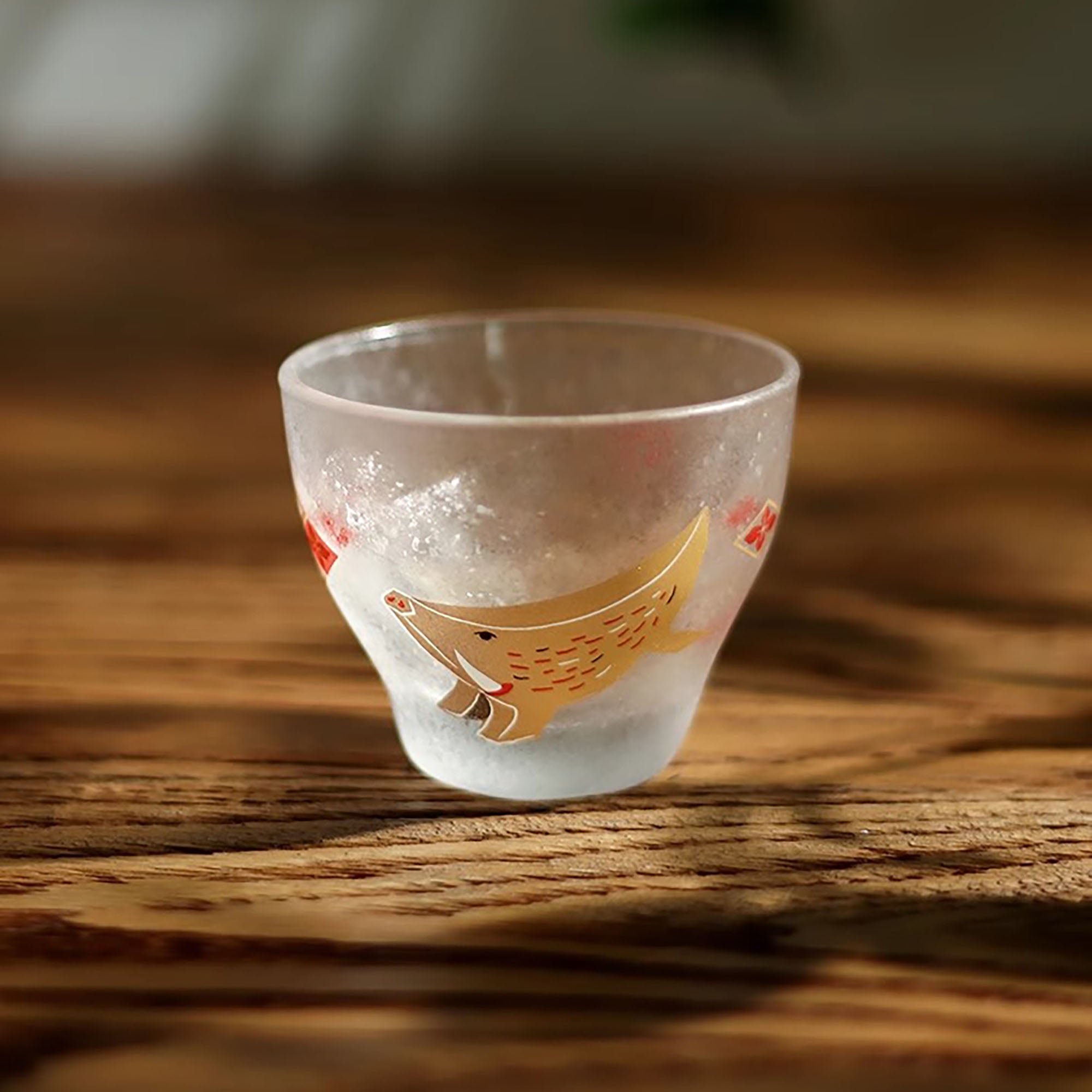 Ce verre à saké japonais produit par Aderia (Ishizuka Glass) incarne l’élégance intemporelle de l’art verrier japonais.Sa texture givrée délicate et lisse, ornée de motifs de flocons de neige, est sublimée par les designs adorables des 12 signes du zodiaque chinois et des porte-bonheur traditionnels japonais.