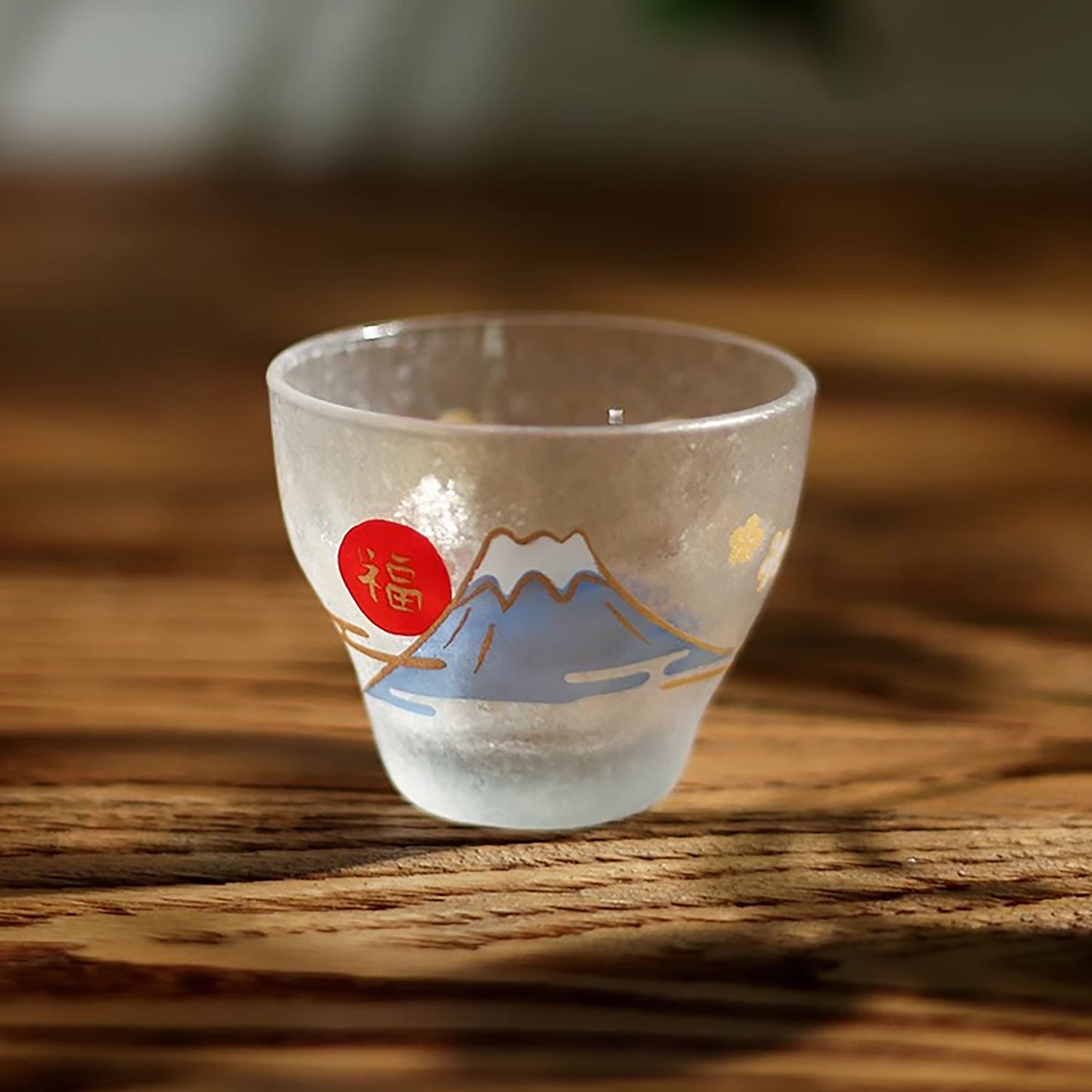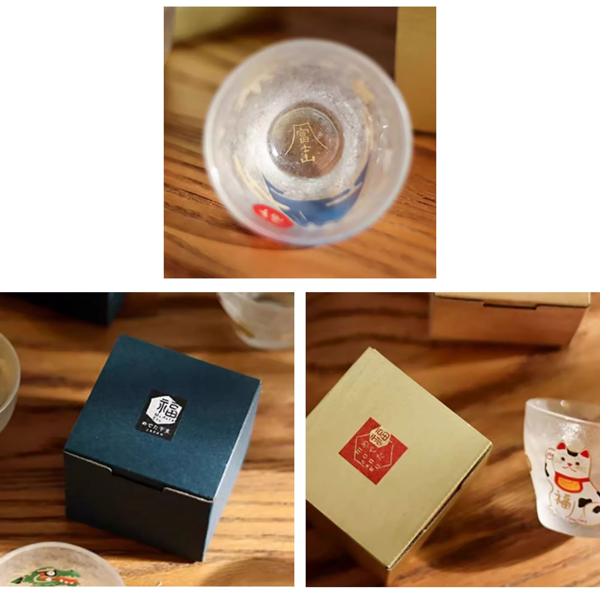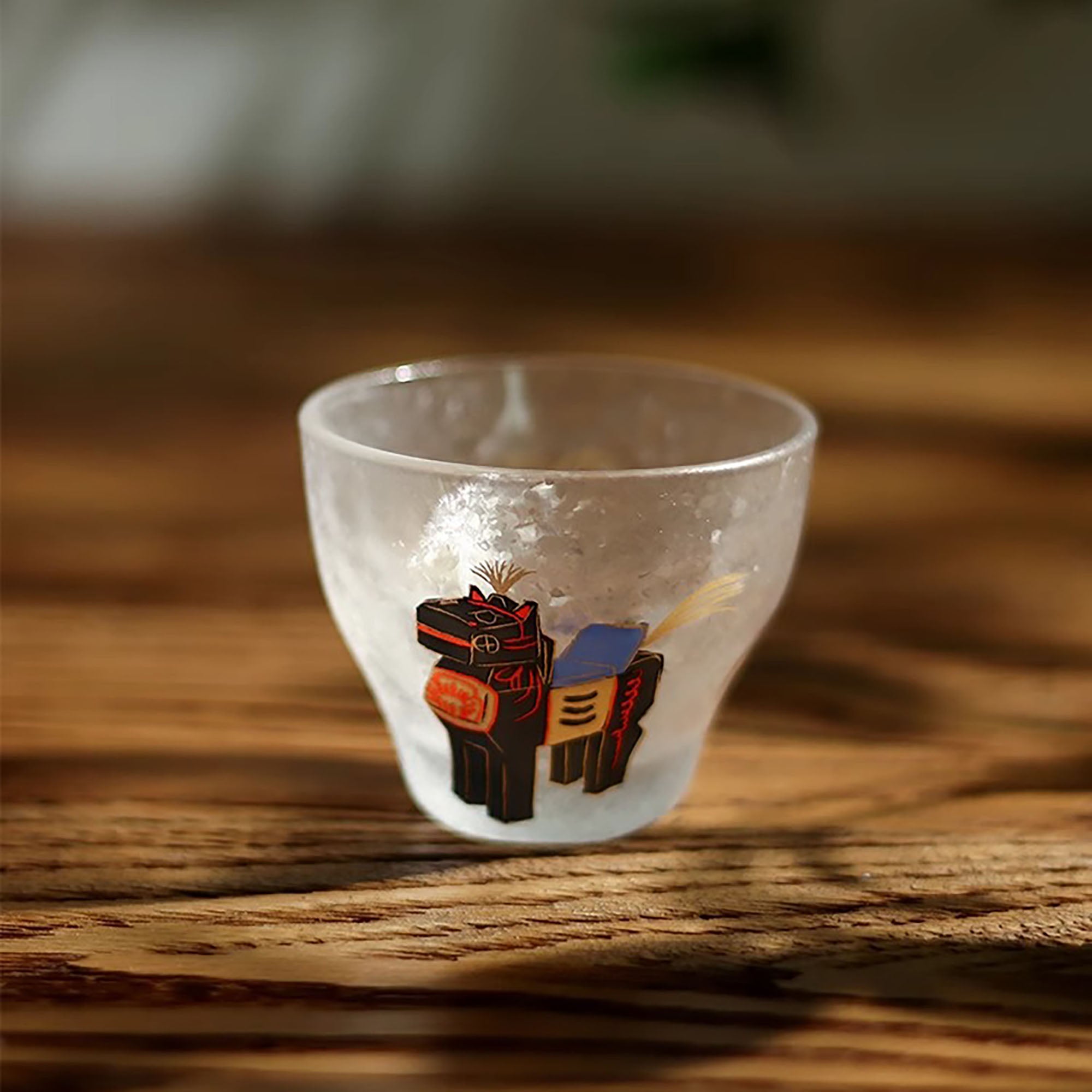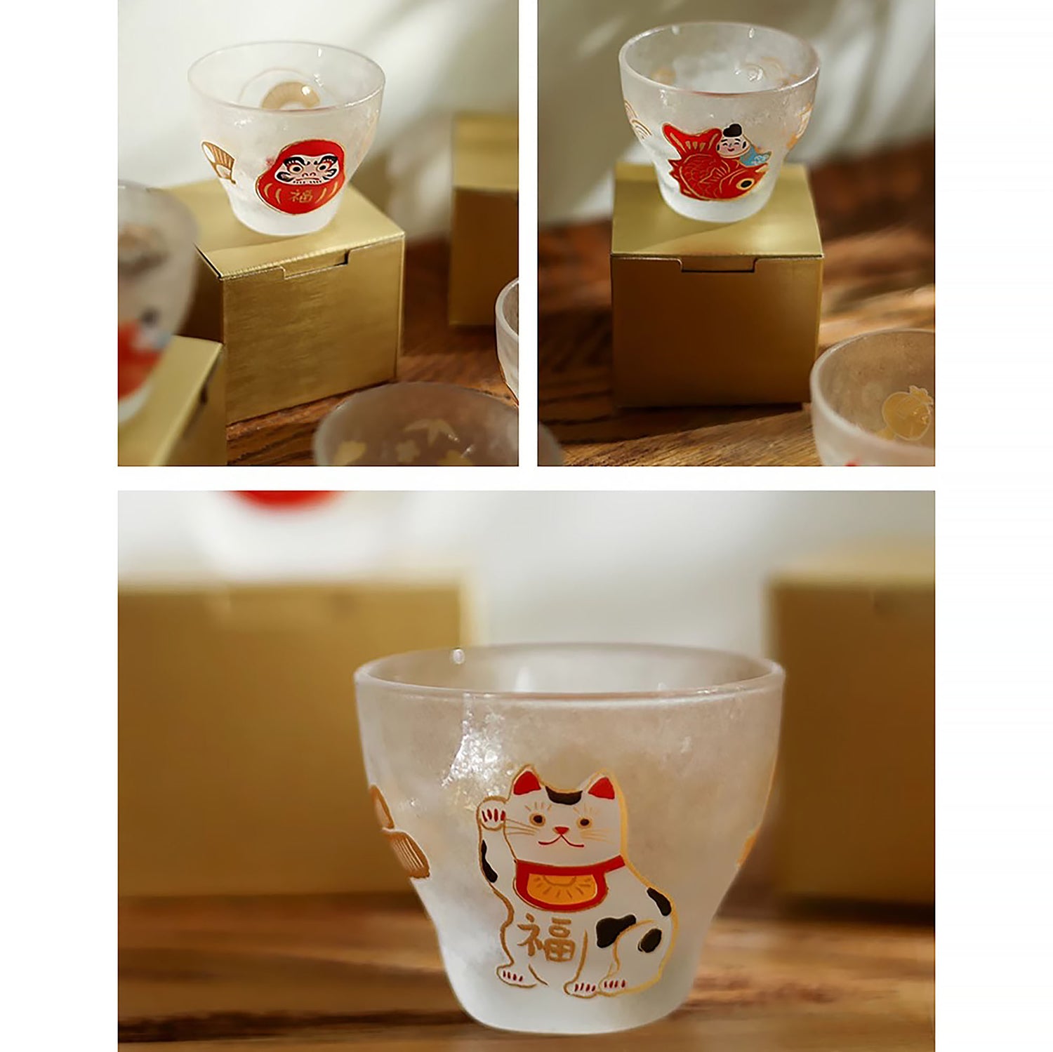 Ce verre à saké japonais produit par Aderia (Ishizuka Glass) incarne l’élégance intemporelle de l’art verrier japonais.Sa texture givrée délicate et lisse, ornée de motifs de flocons de neige, est sublimée par les designs adorables des 12 signes du zodiaque chinois et des porte-bonheur traditionnels japonais.